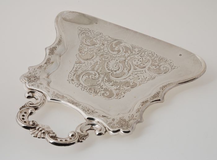 Zilveren tafelblik met bewerkte randen en blad
