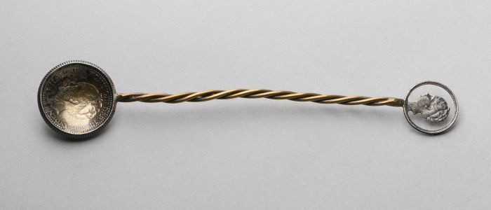 Lepeltje samengesteld uit één gulden uit 1930 en één...