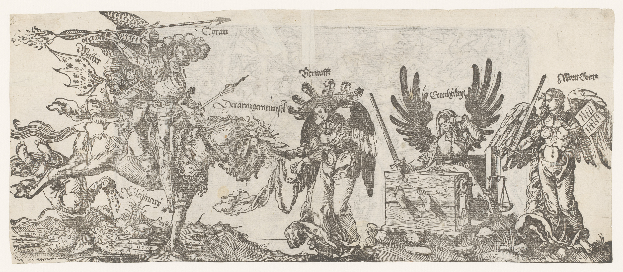 Allegorie met strijd van Tirannie, Woeker en Hypocri...