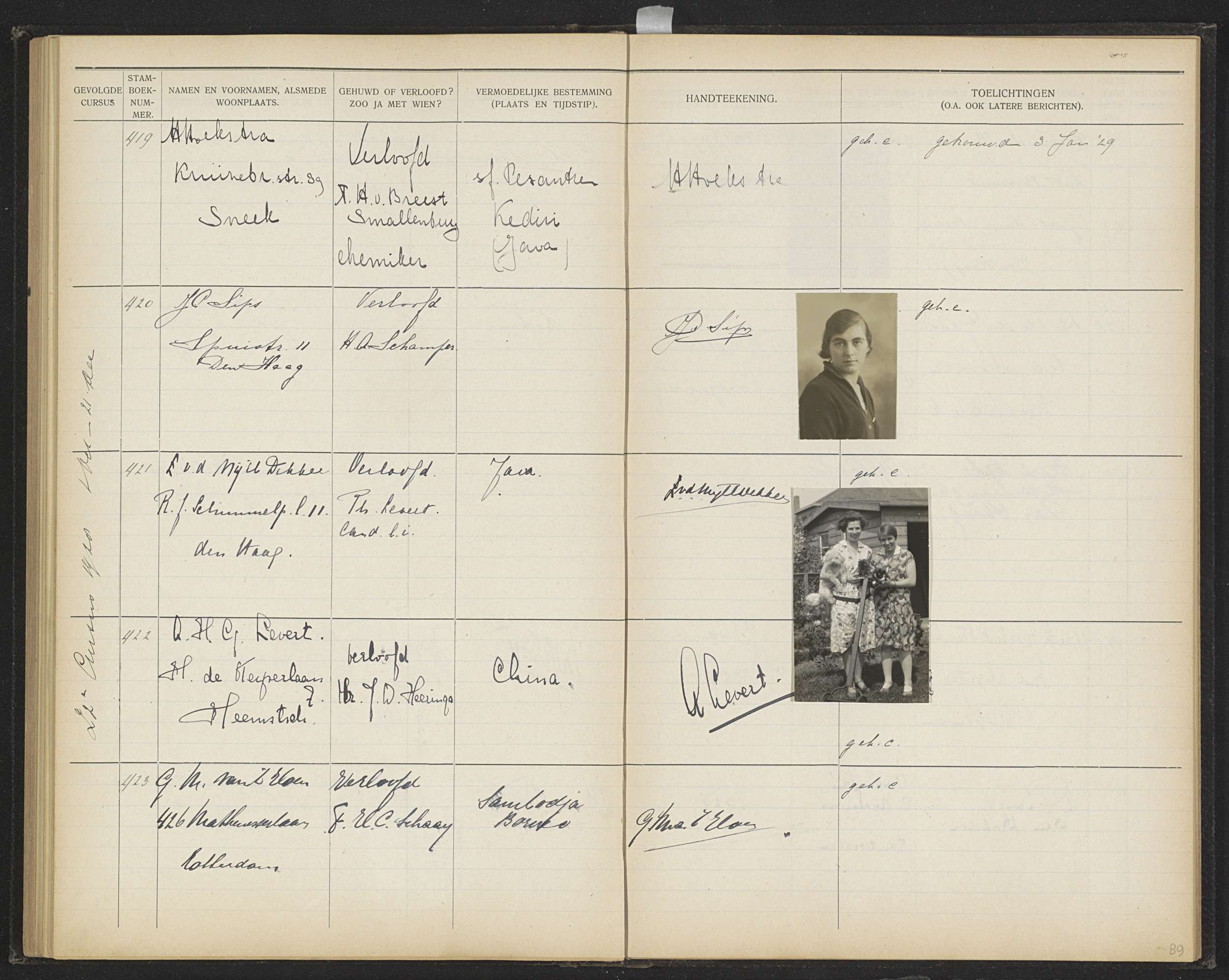 Blad 89 uit Stamboek van de leerlingen der Koloniale...