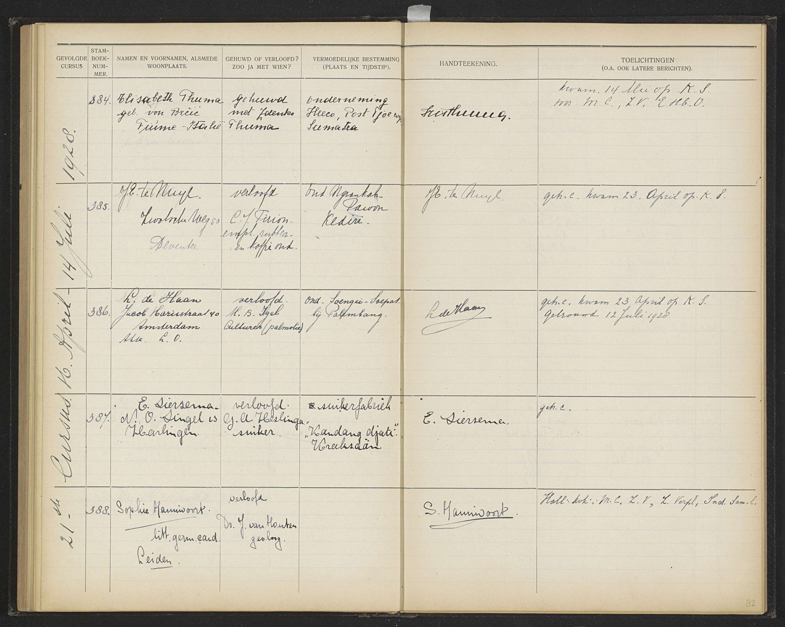Blad 82 uit Stamboek van de leerlingen der Koloniale...