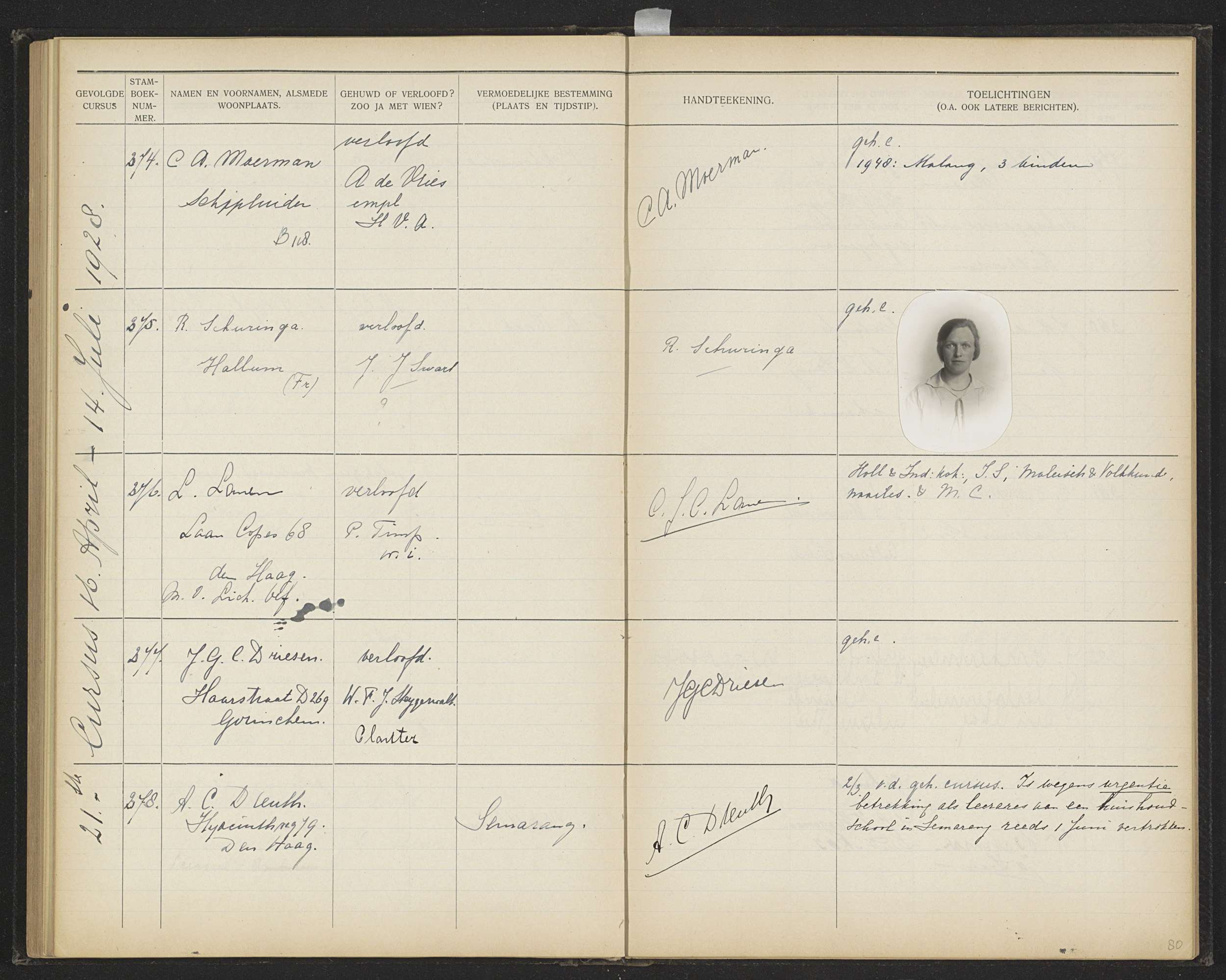 Blad 80 uit Stamboek van de leerlingen der Koloniale...