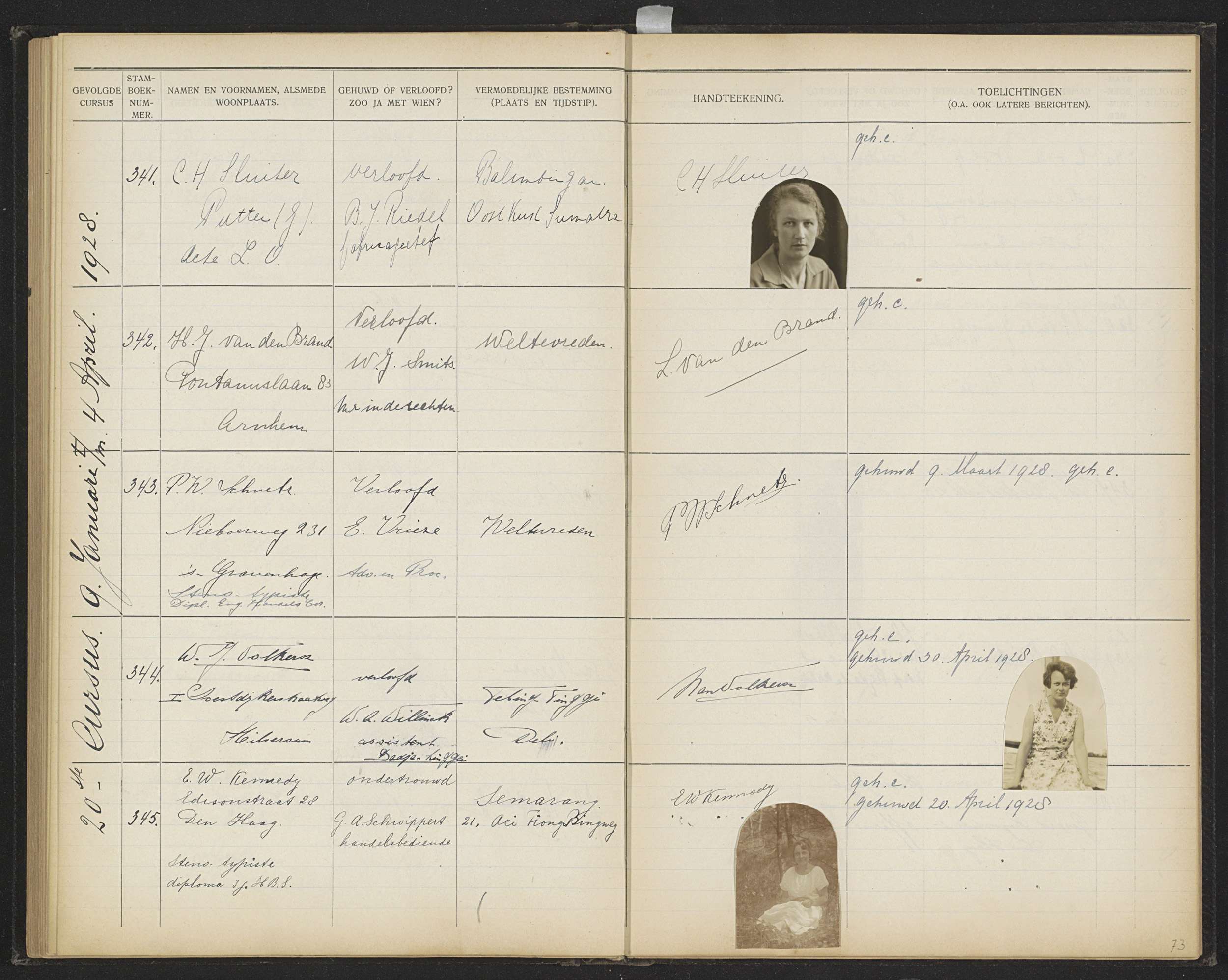 Blad 73 uit Stamboek van de leerlingen der Koloniale...