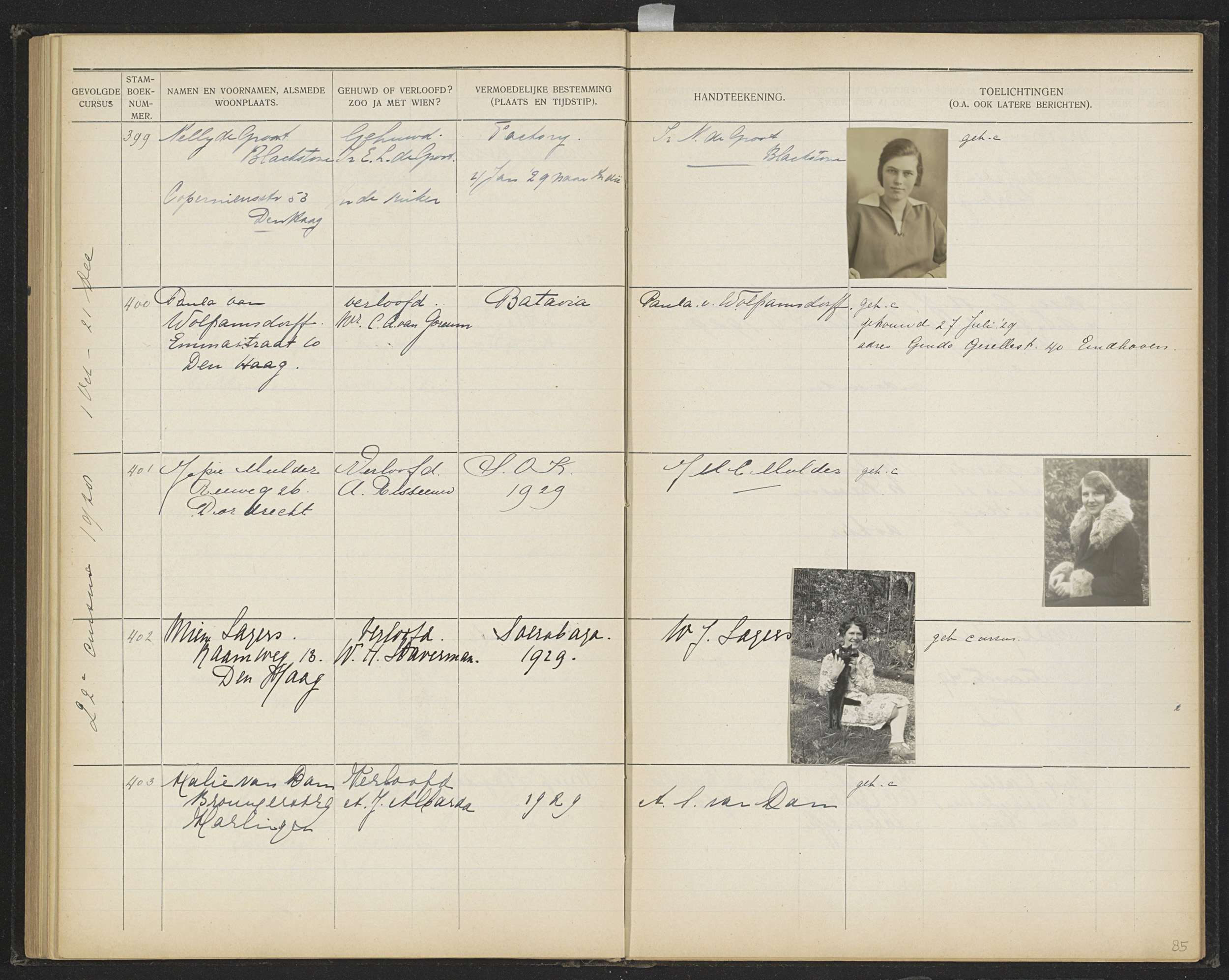 Blad 85 uit Stamboek van de leerlingen der Koloniale...