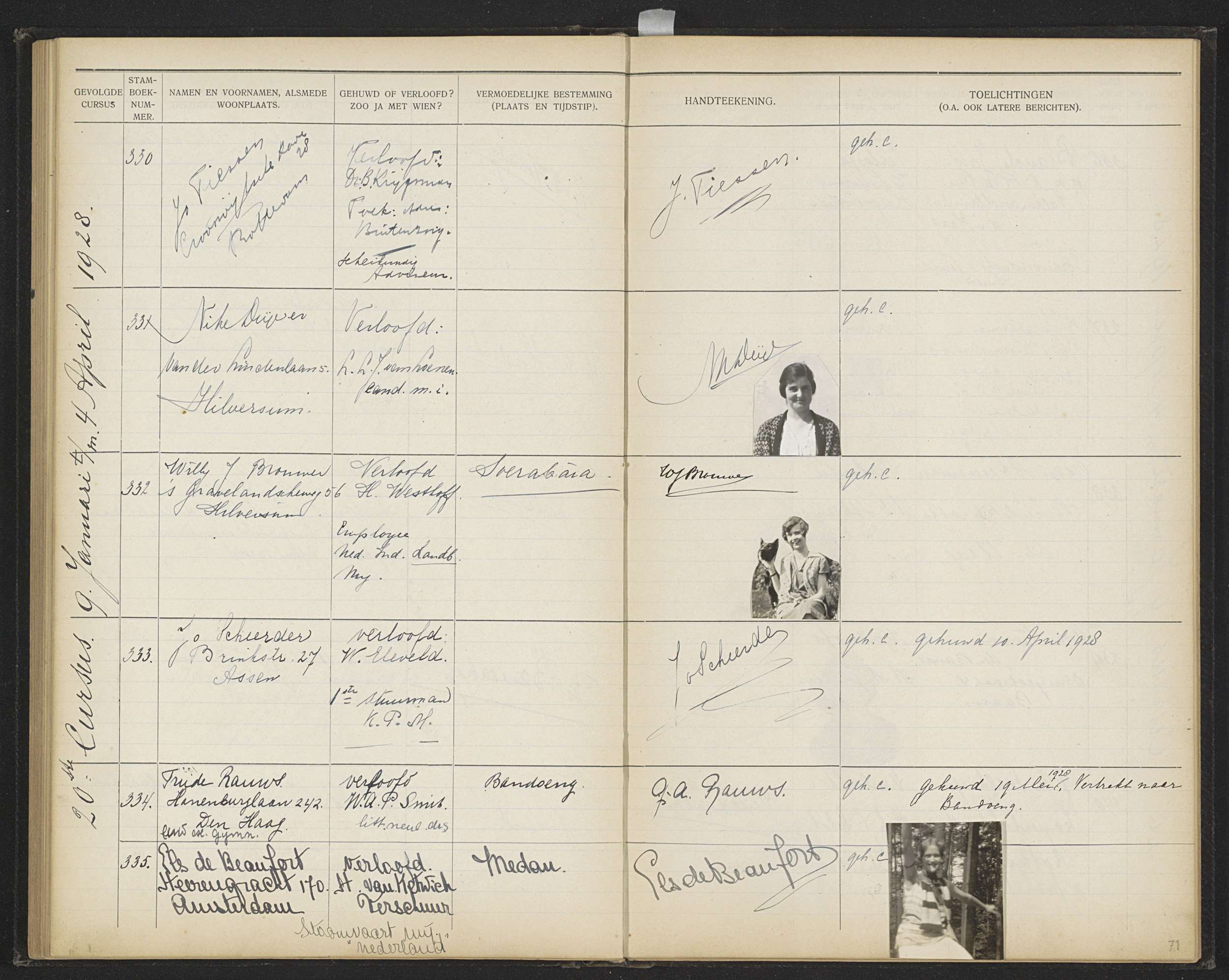 Blad 71 uit Stamboek van de leerlingen der Koloniale...