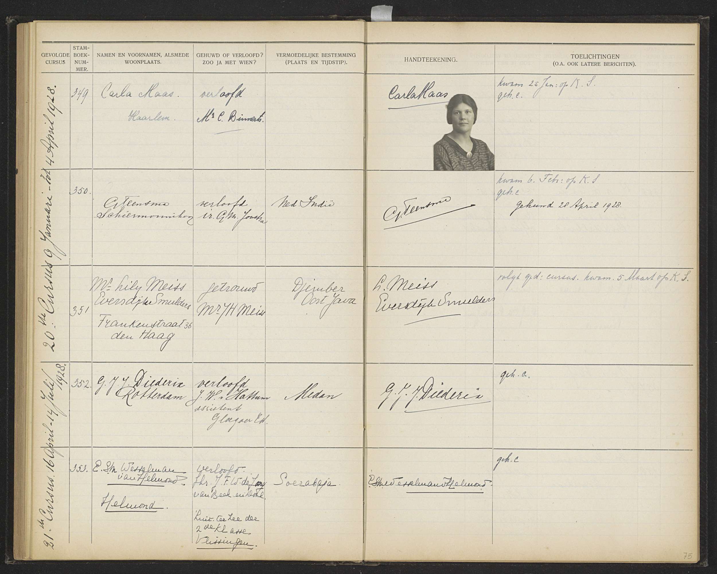 Blad 75 uit Stamboek van de leerlingen der Koloniale...