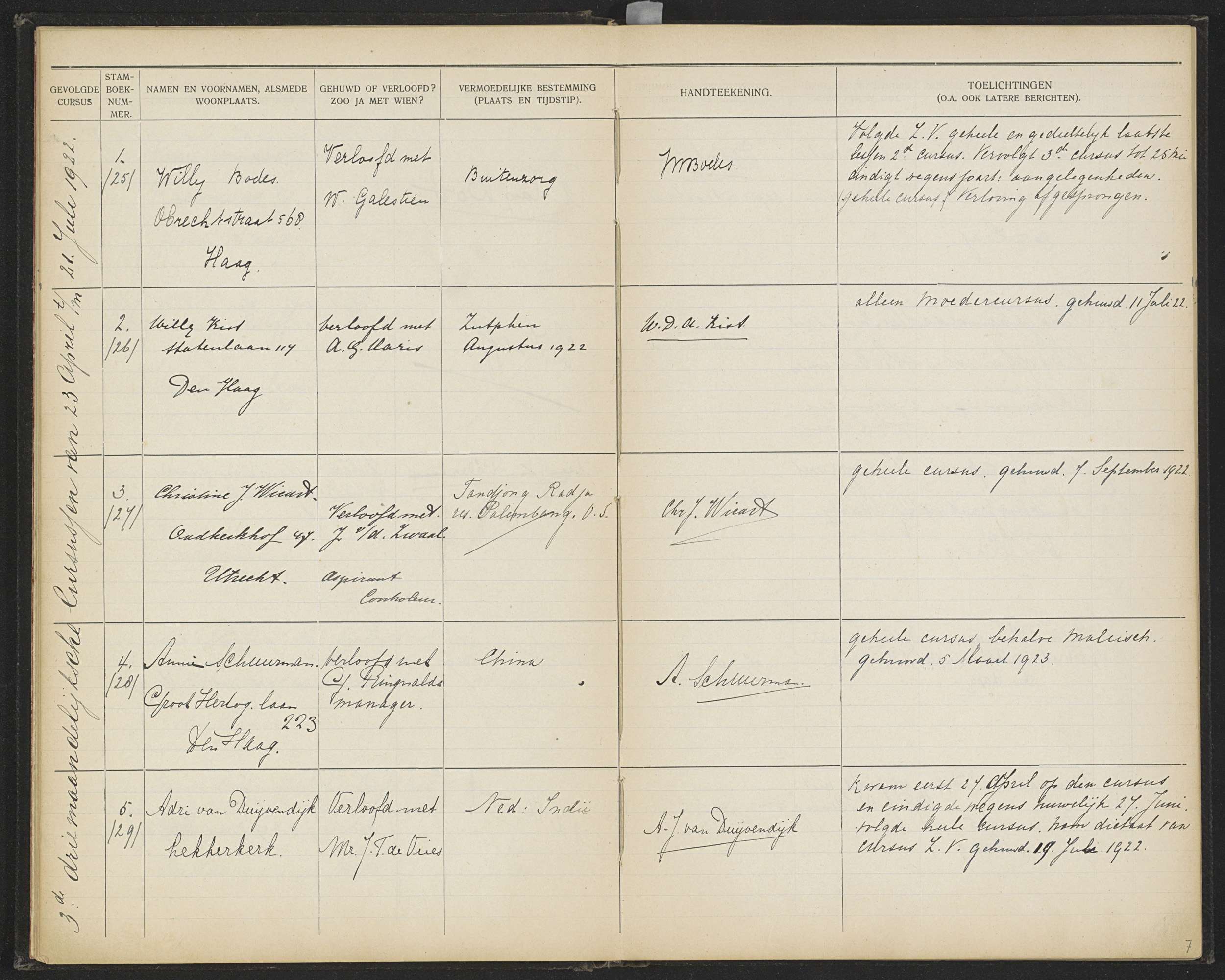 Blad 7 uit Stamboek van de leerlingen der Koloniale ...