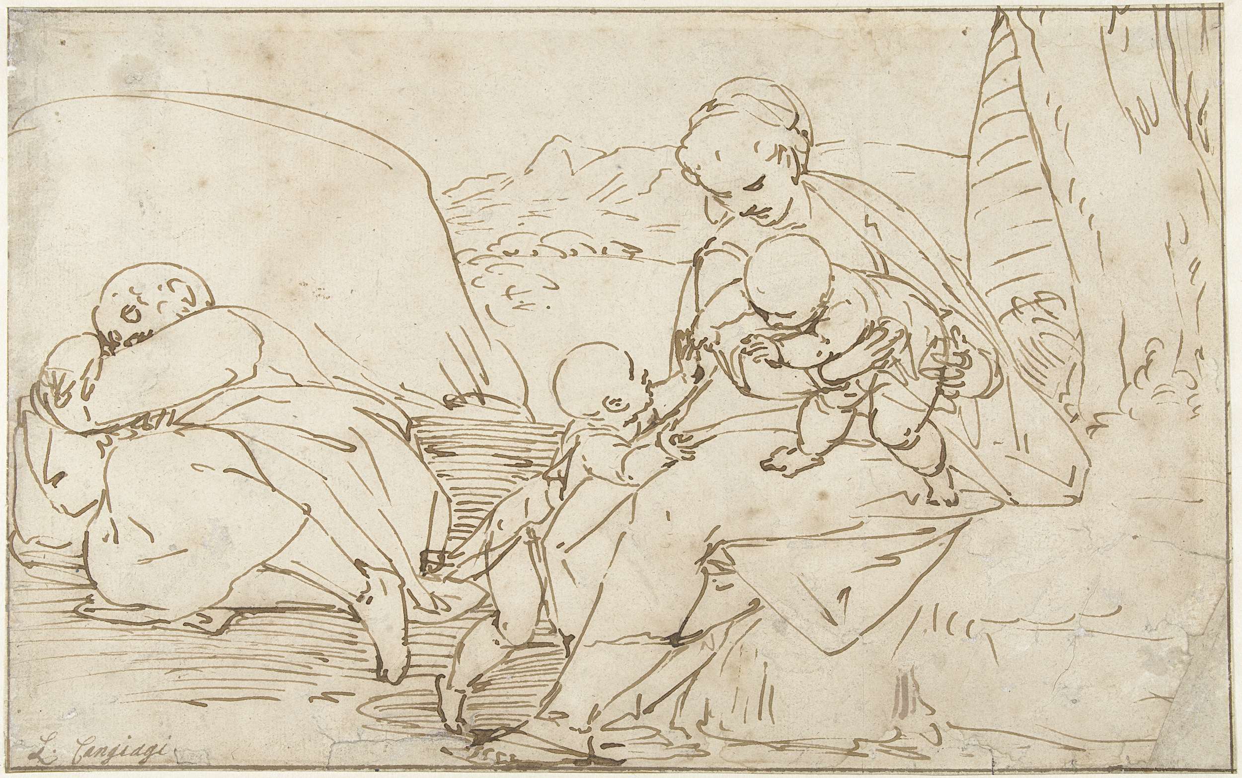 Heilige Familie met Johannes de Doper als kind in ee...