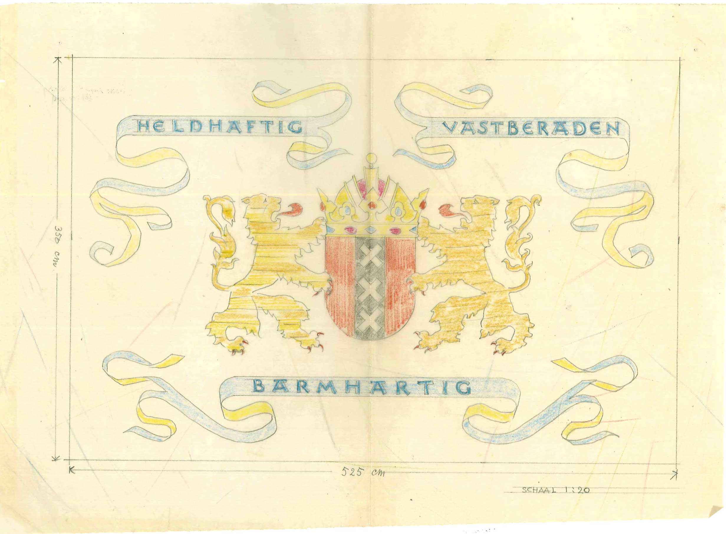 Ontwerptekening voor deviesvlag stad Amsterdam