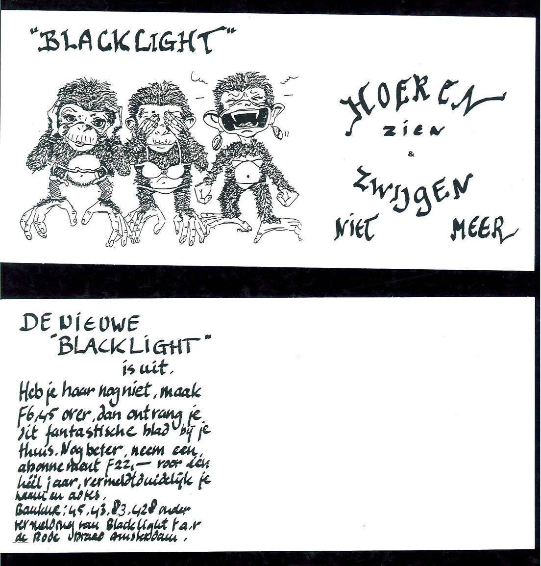 Flyer voor 'Blacklight', tijdschrift van De Rode Draad
