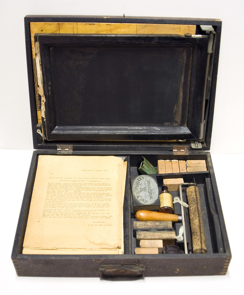 Kistkoffer met drukplaten voor het zelf maken van dr...