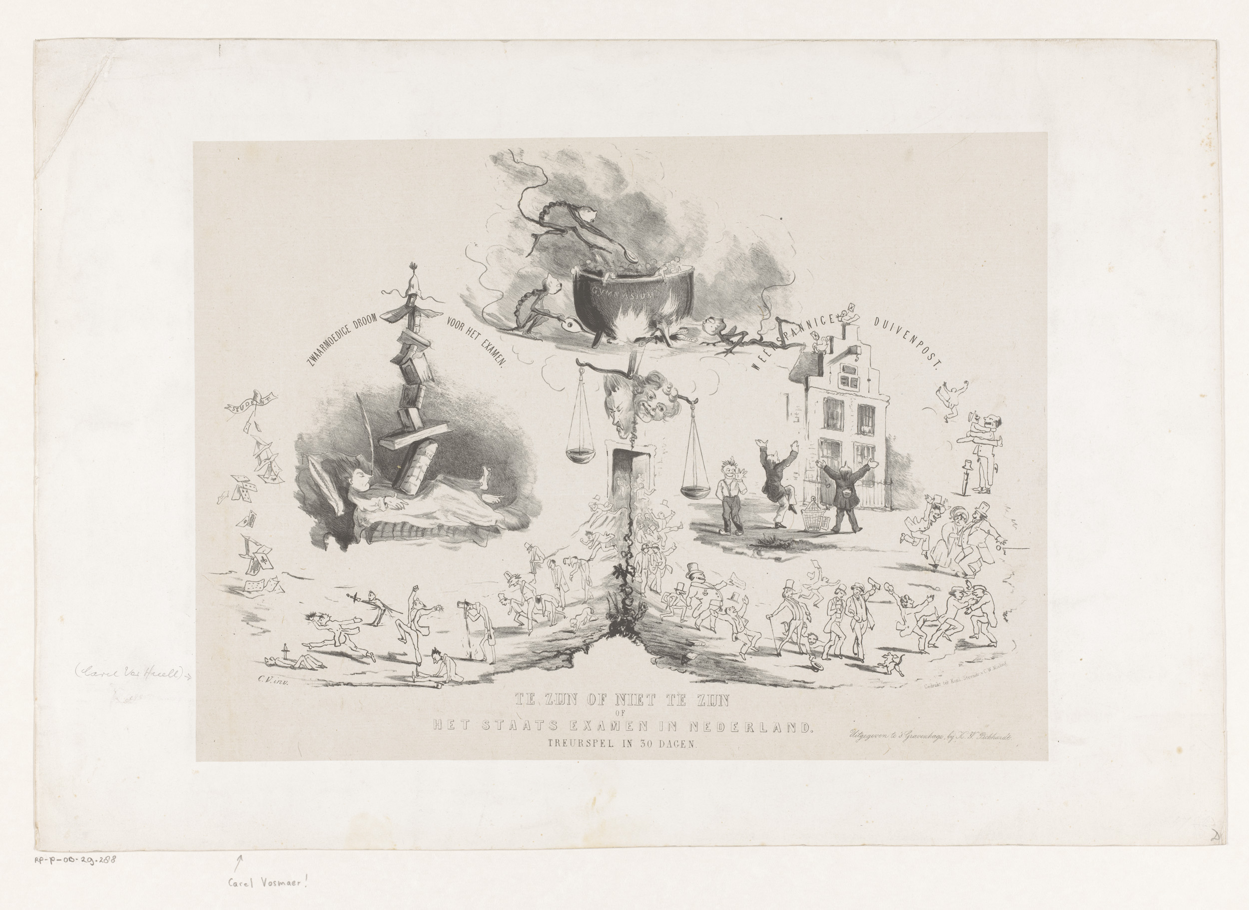 Spotprent op het staatsexamen ter toelating tot de u...