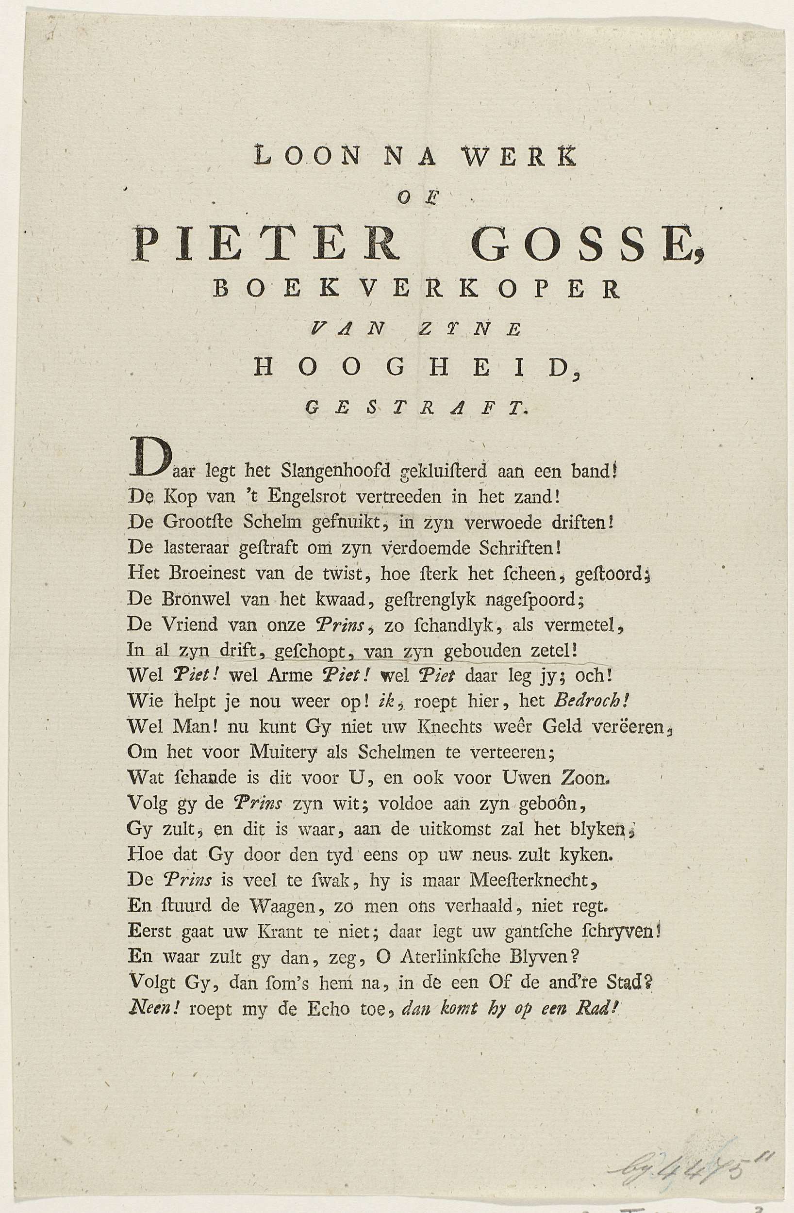 Spotvers op Pieter Gosse, 1781