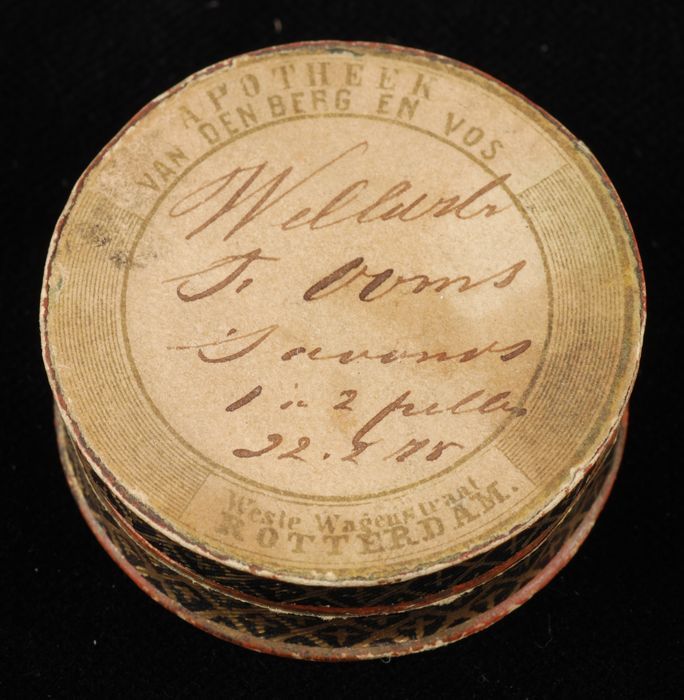Kartonnen pillendoos "Apotheek Van den Bergh en Vos,...