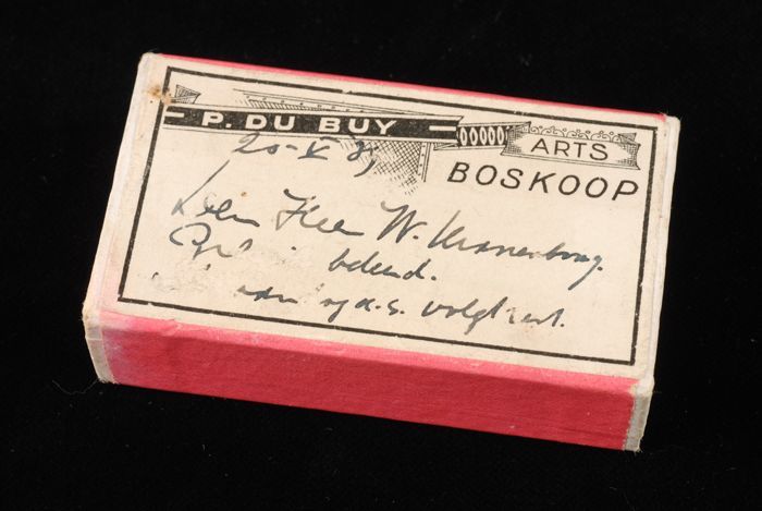 Rechthoekig kartonnen pillendoosje "P. Du Buy, Arts,...