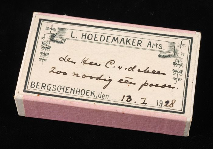 Rechthoekig kartonnen pillendoosje "L. Hoedemaker Ar...