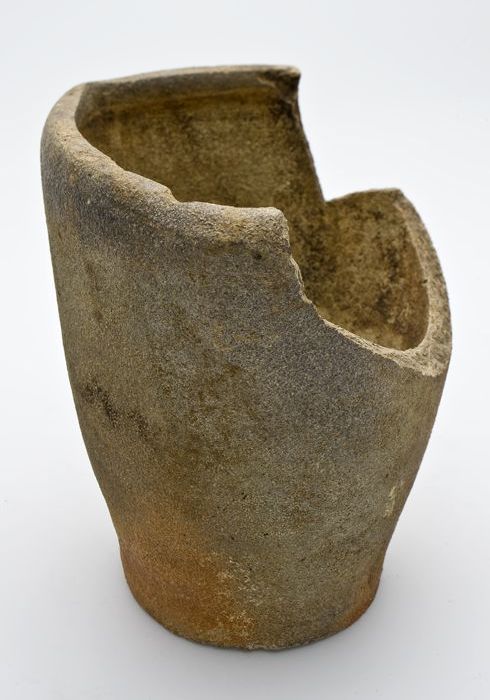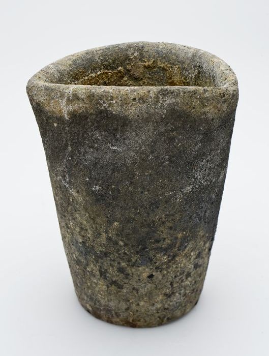 Aardewerk vijzel met twee platte, massieve, horizont...