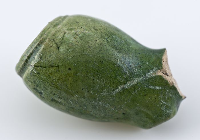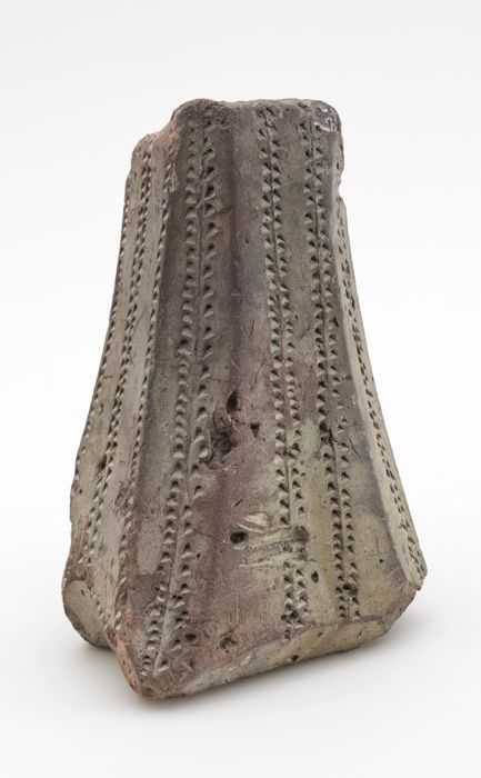 Fragment aardewerk spitoplegger, driehoekig model me...