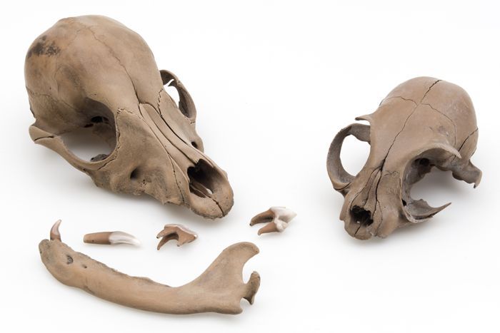 Schedels van huisdieren, honden, losse kaak en kieze...