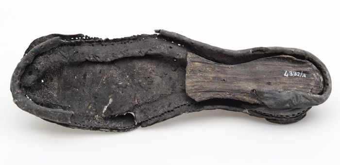 Fragmenten van damesschoen, houten binnenzool, vastg...