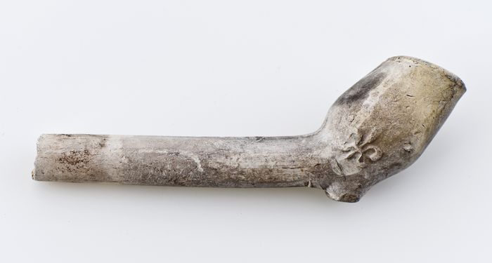 Witte pijpenkop, ongemerkt, in reliëf een fleurs de ...