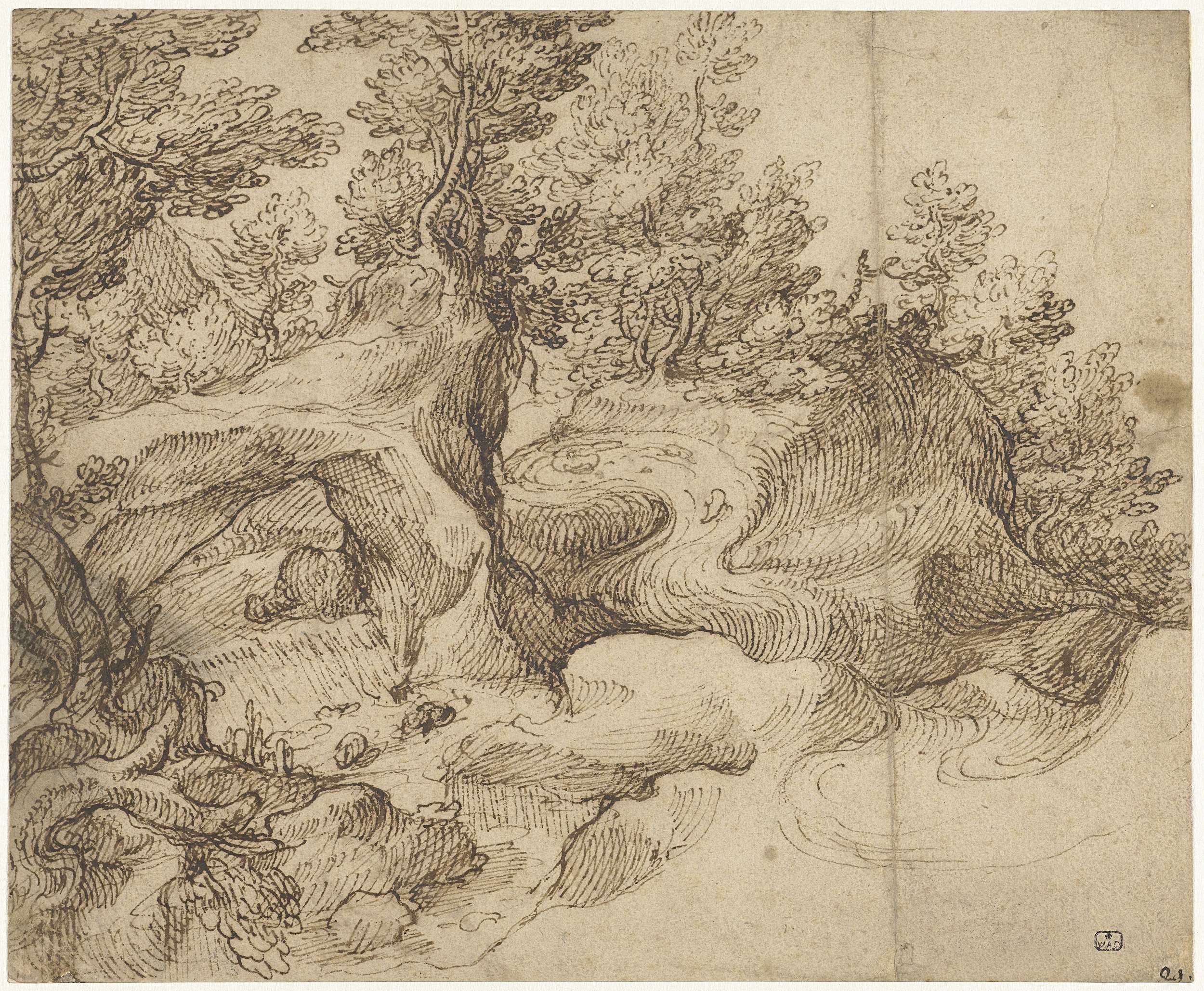 Begroeide rotsen bij een bergbeek