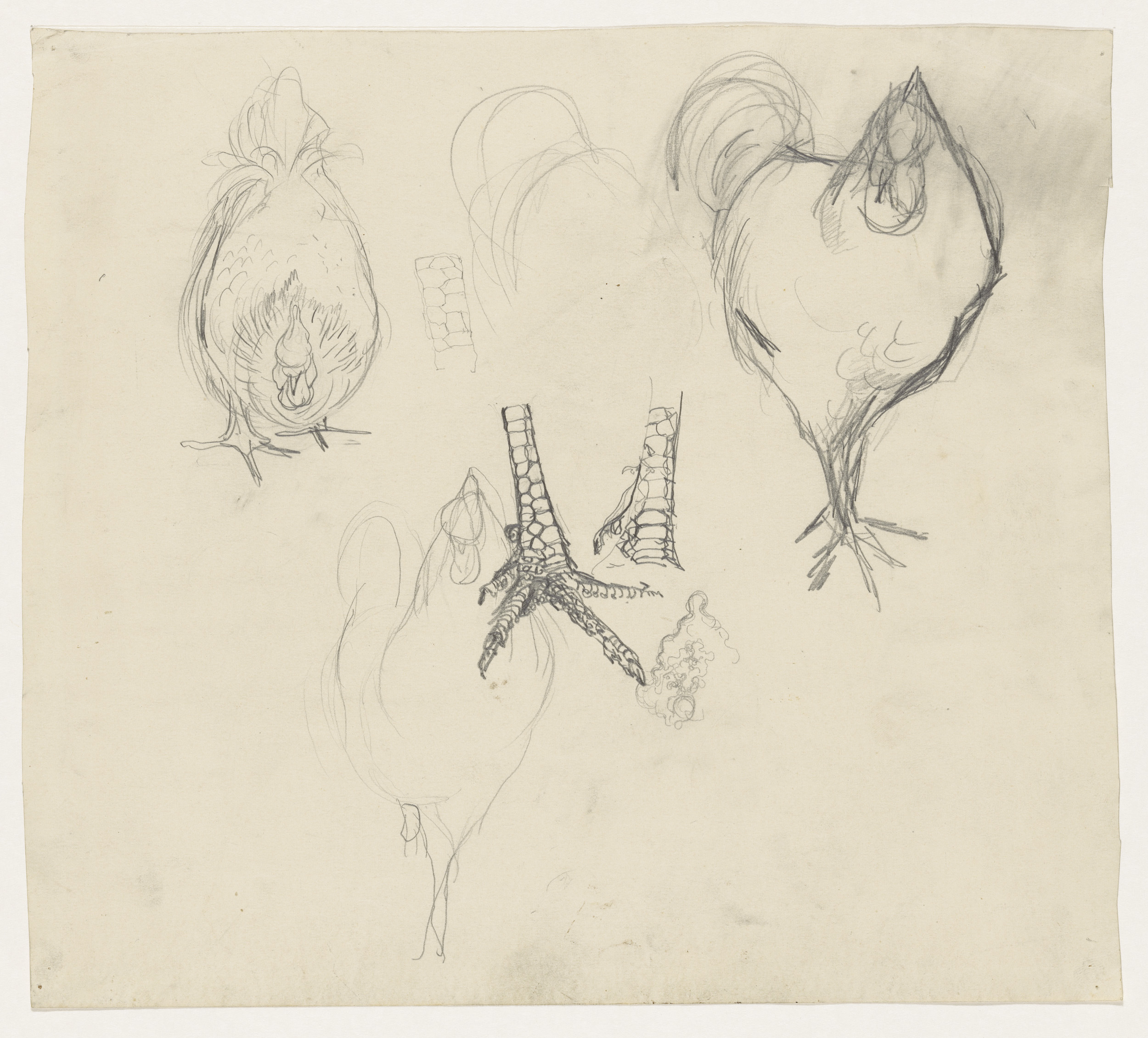 Twee hanen, een kip en drie kippenpoten