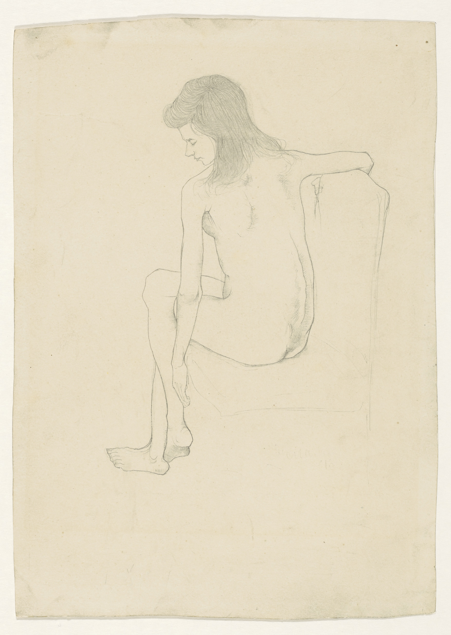 Figuurstudie van een liggende jongen