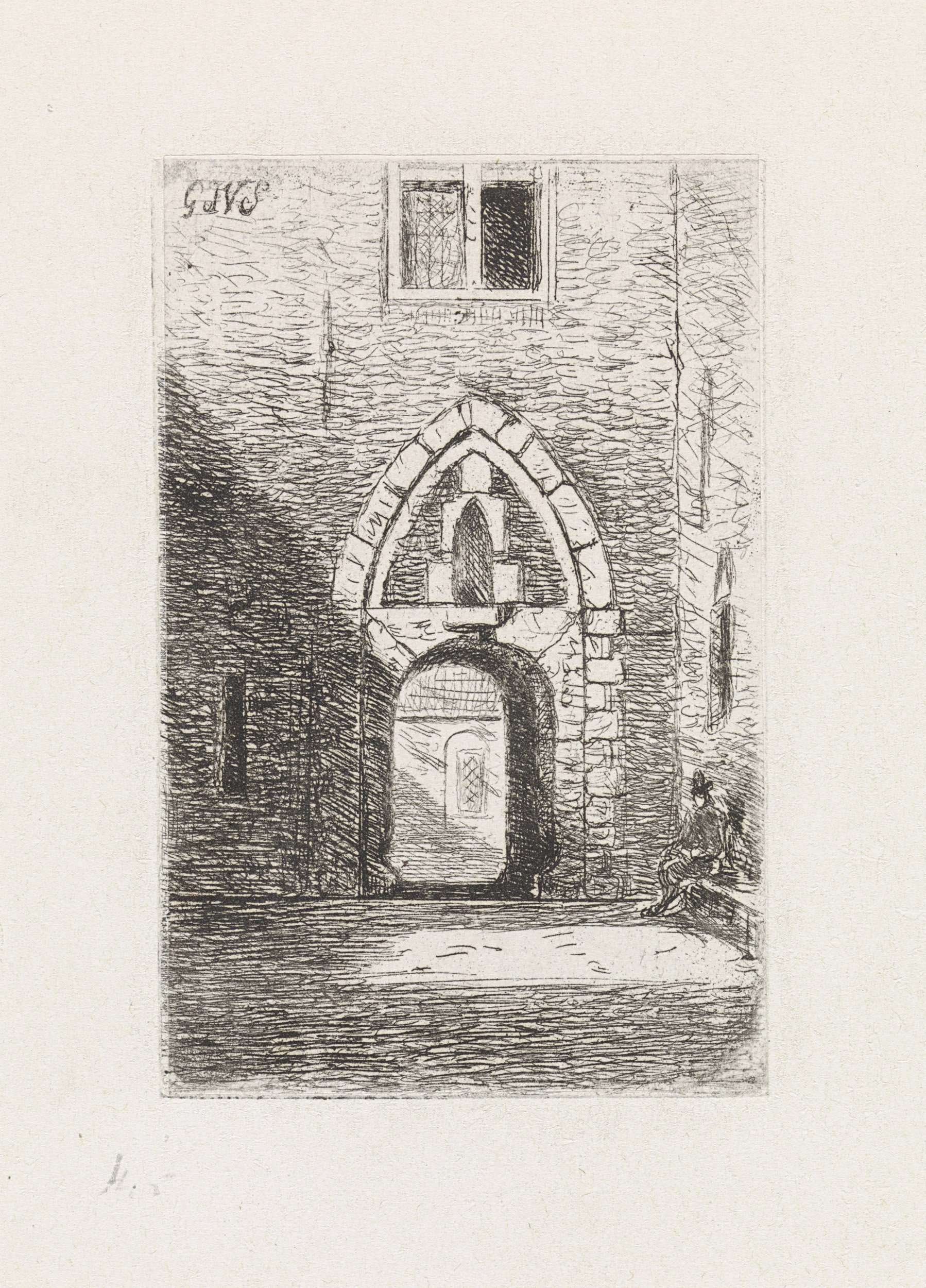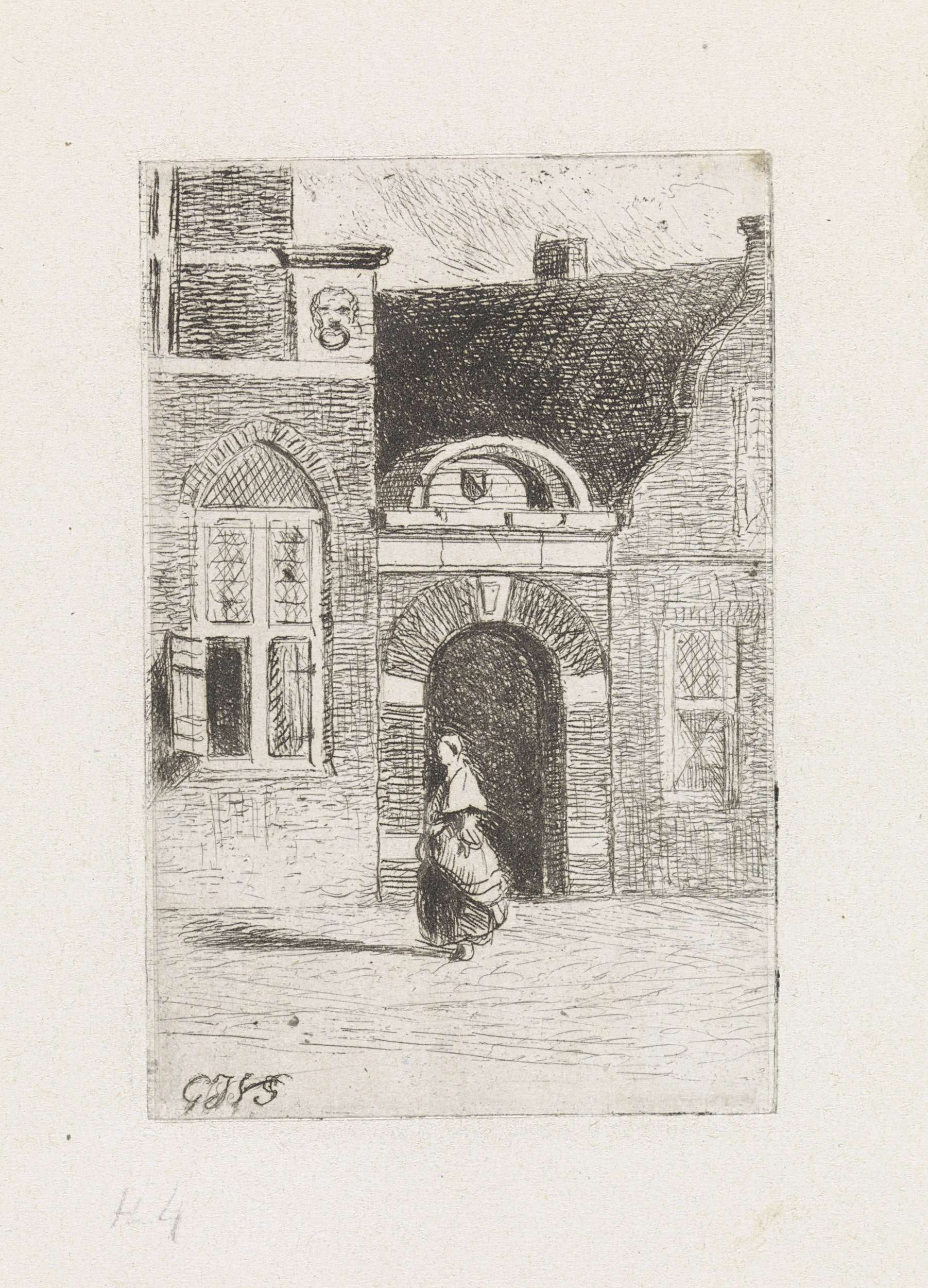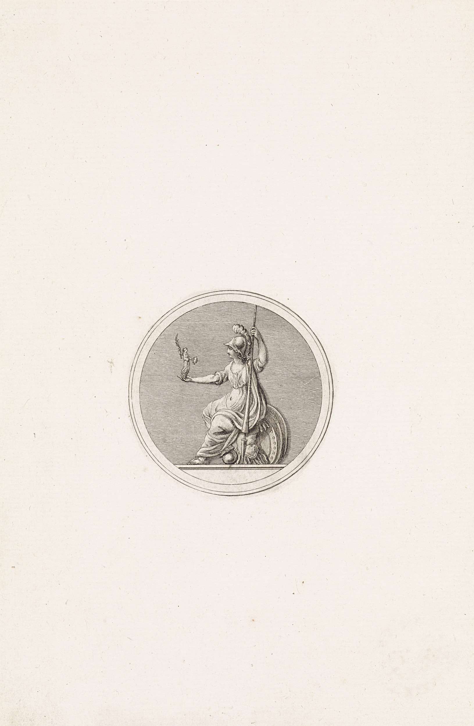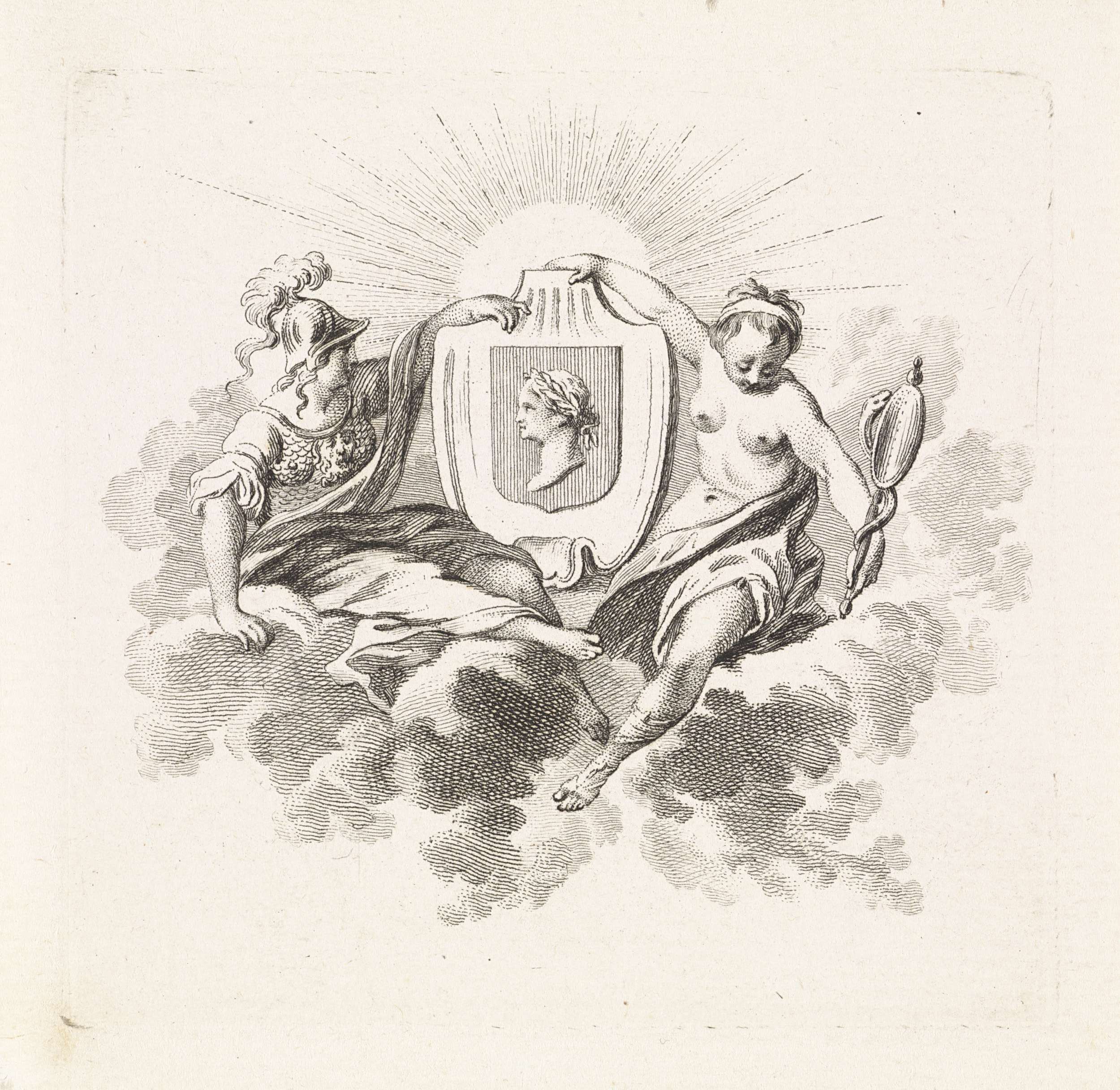 Vignet met een vrouw met een onbekend wapen