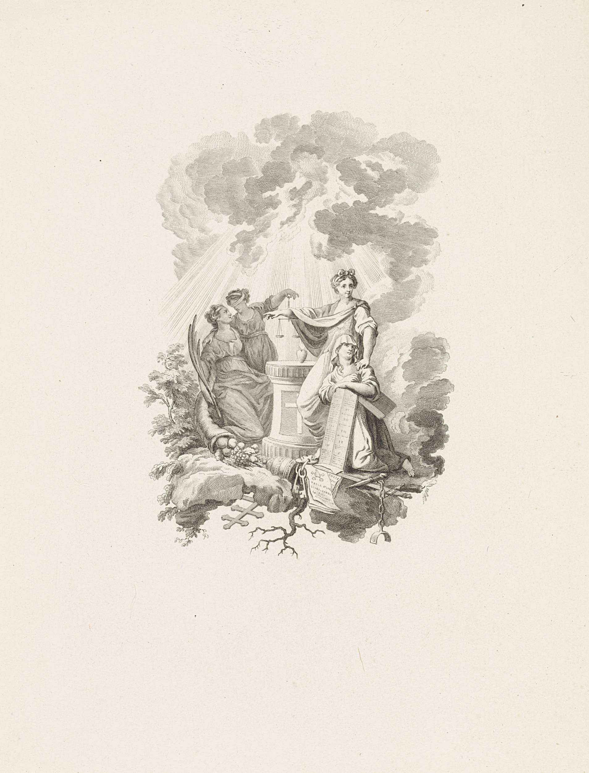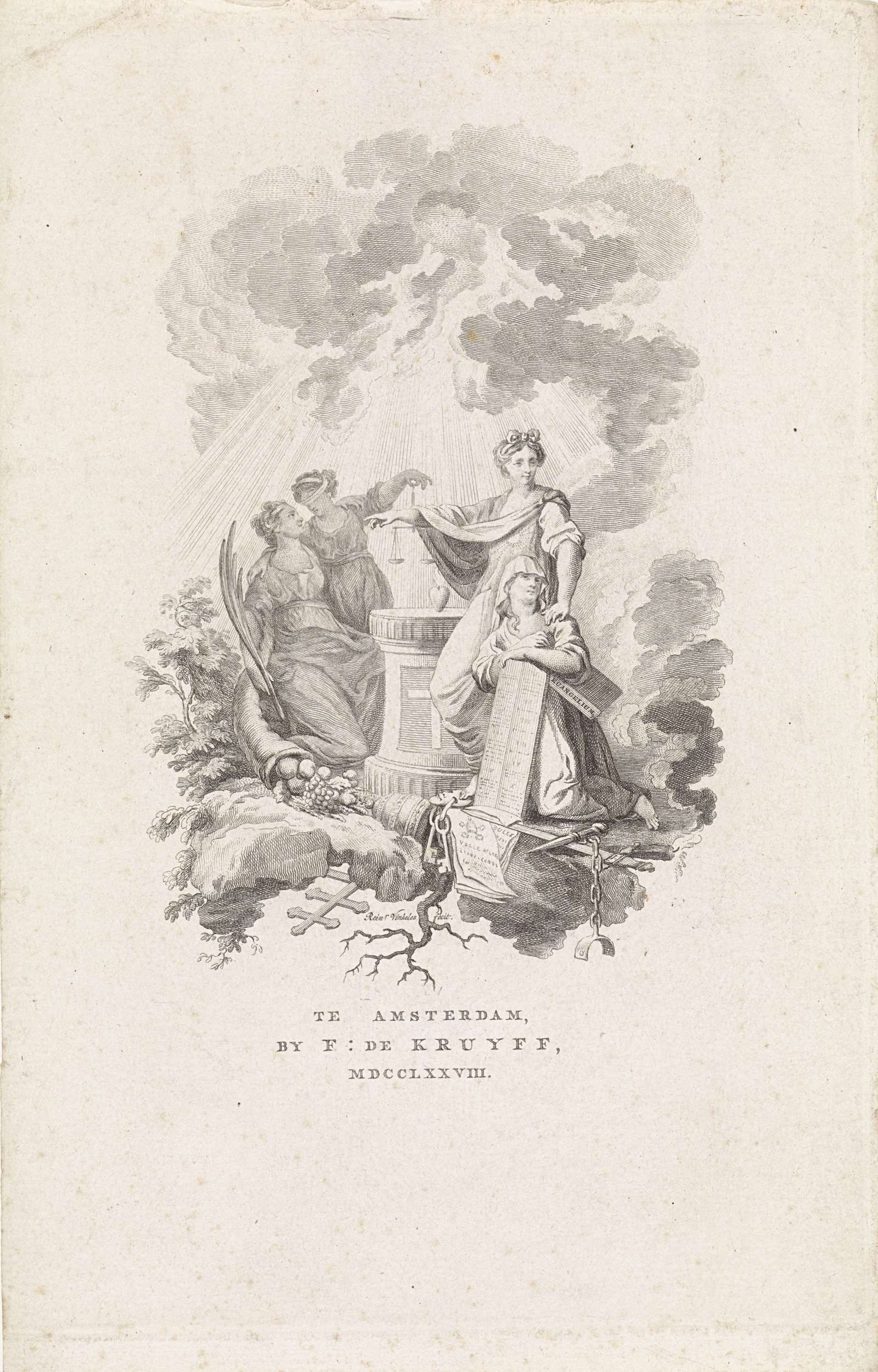 Titelprent met vier vrouwelijke personificaties bij ...