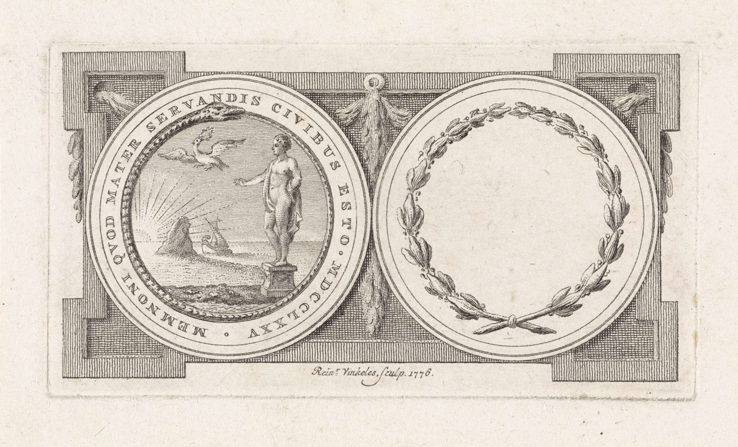 Penning met op de achterzijde een lauwerkrans