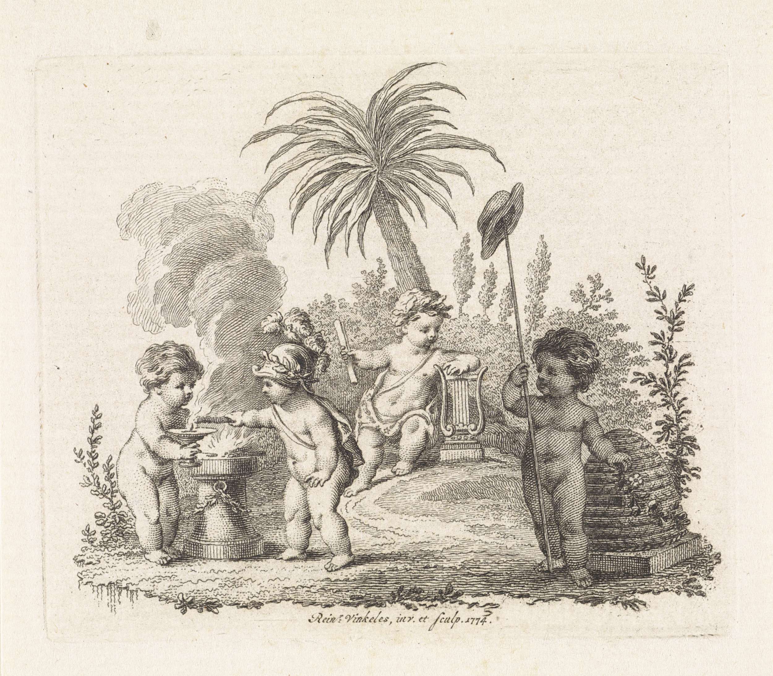 Vier putti met allegorische attributen