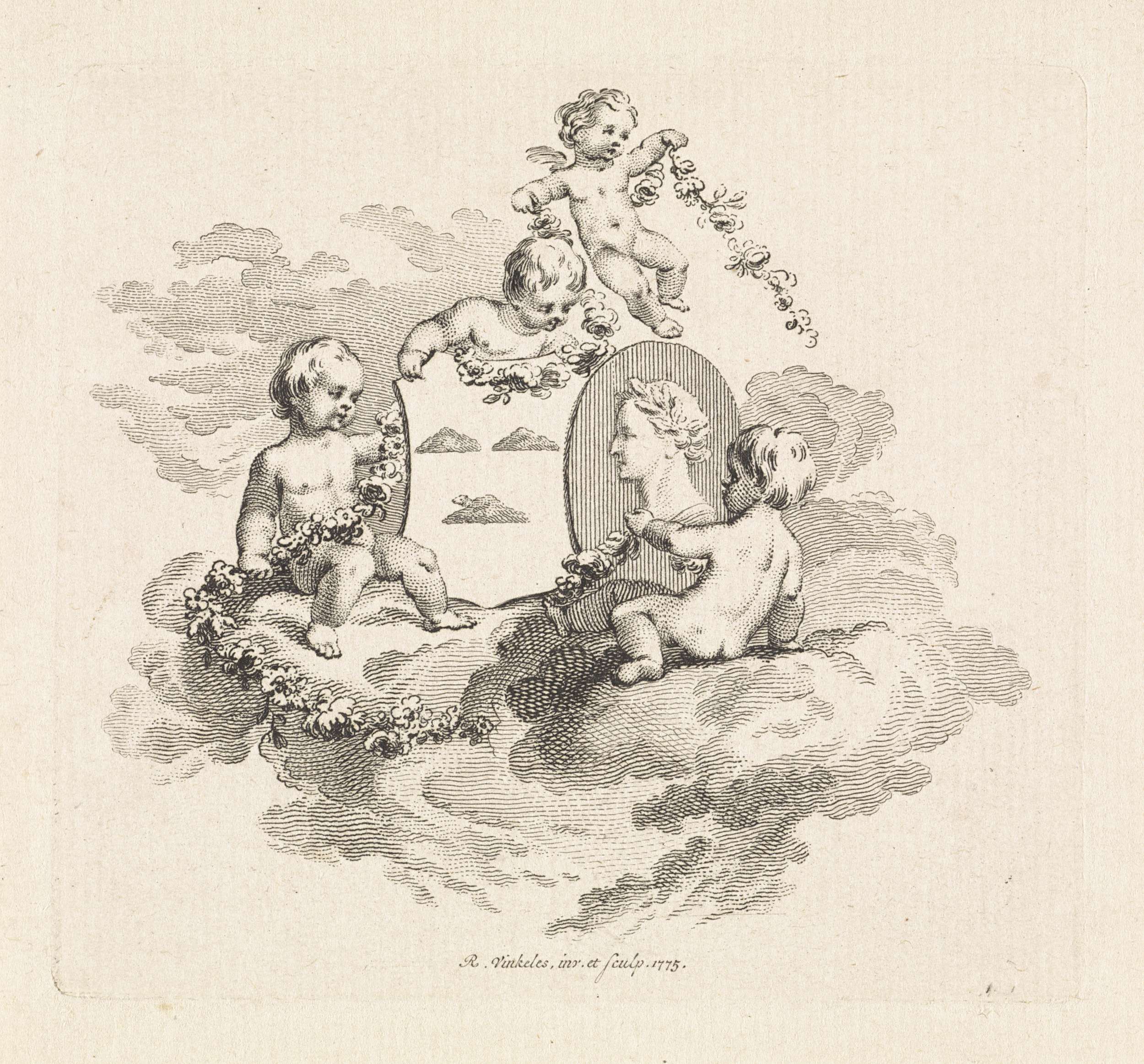 Vier putti met de familiewapens van Graafland en Hooft