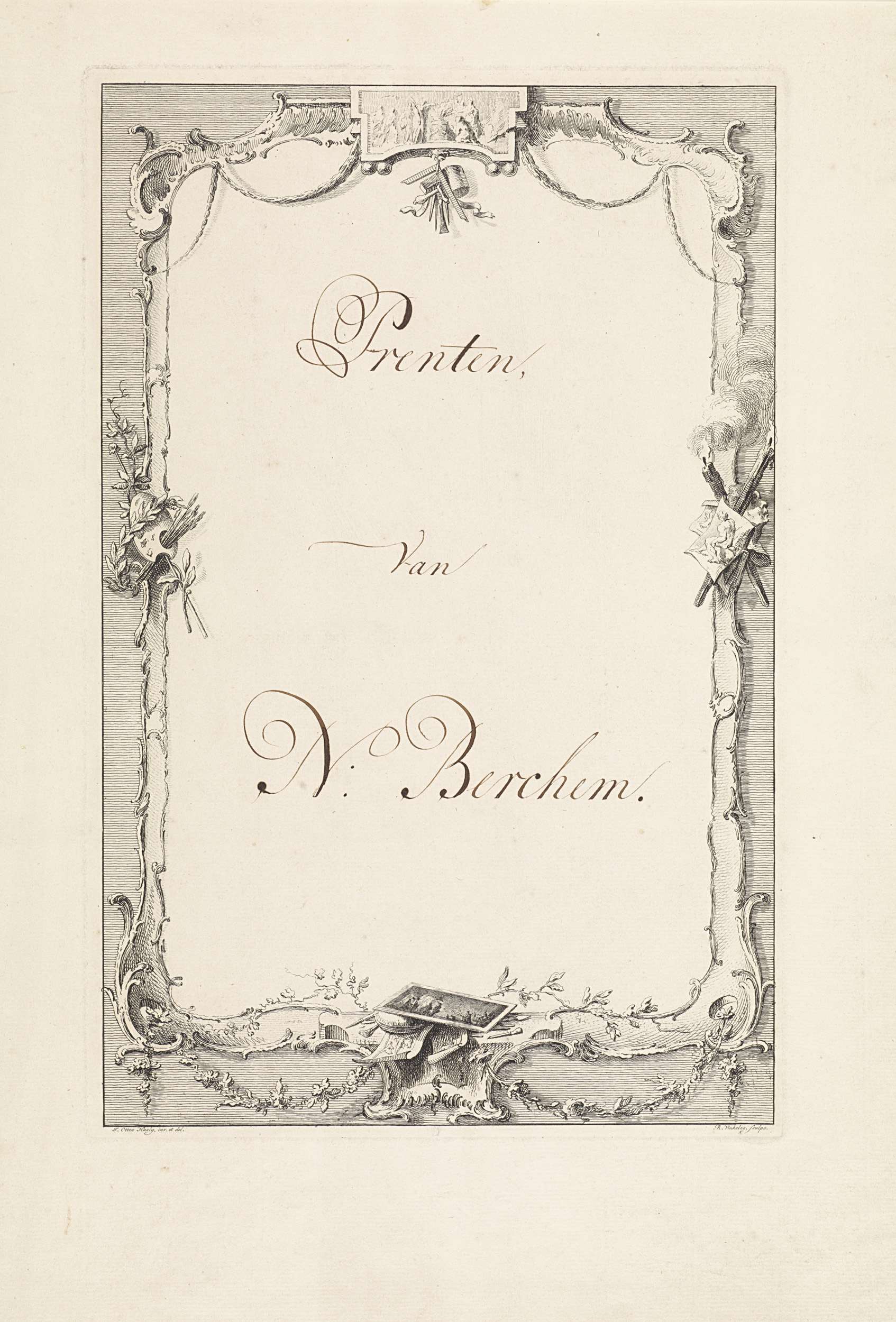 Blad met ornamentele omlijsting voor de "Prenten van...