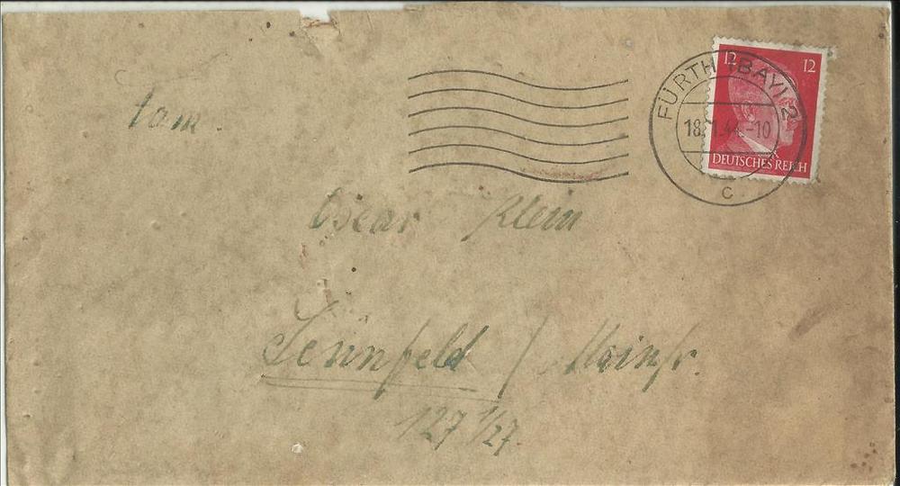 Brief in enveloppe aan de familie Oskar Klein te Sen...