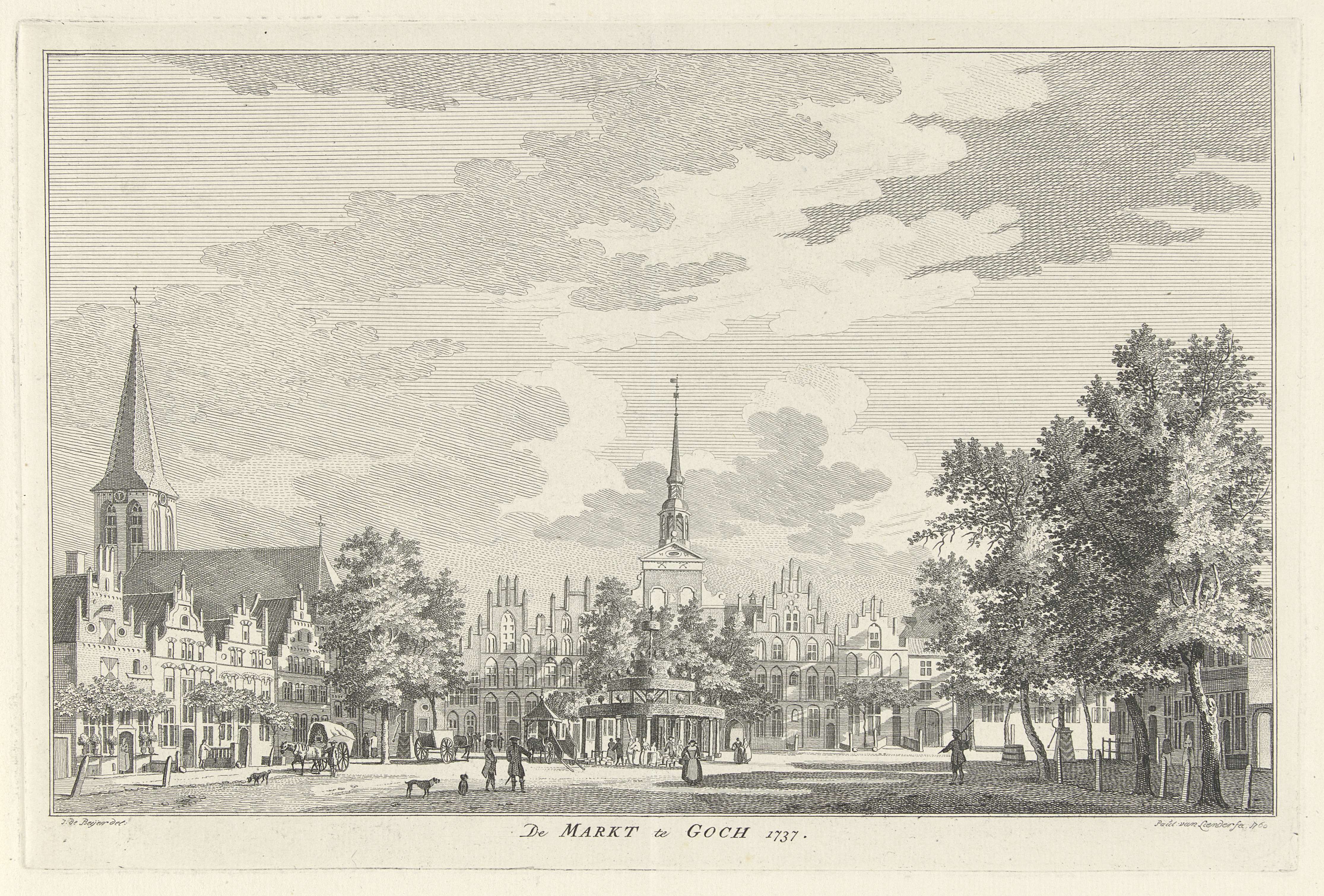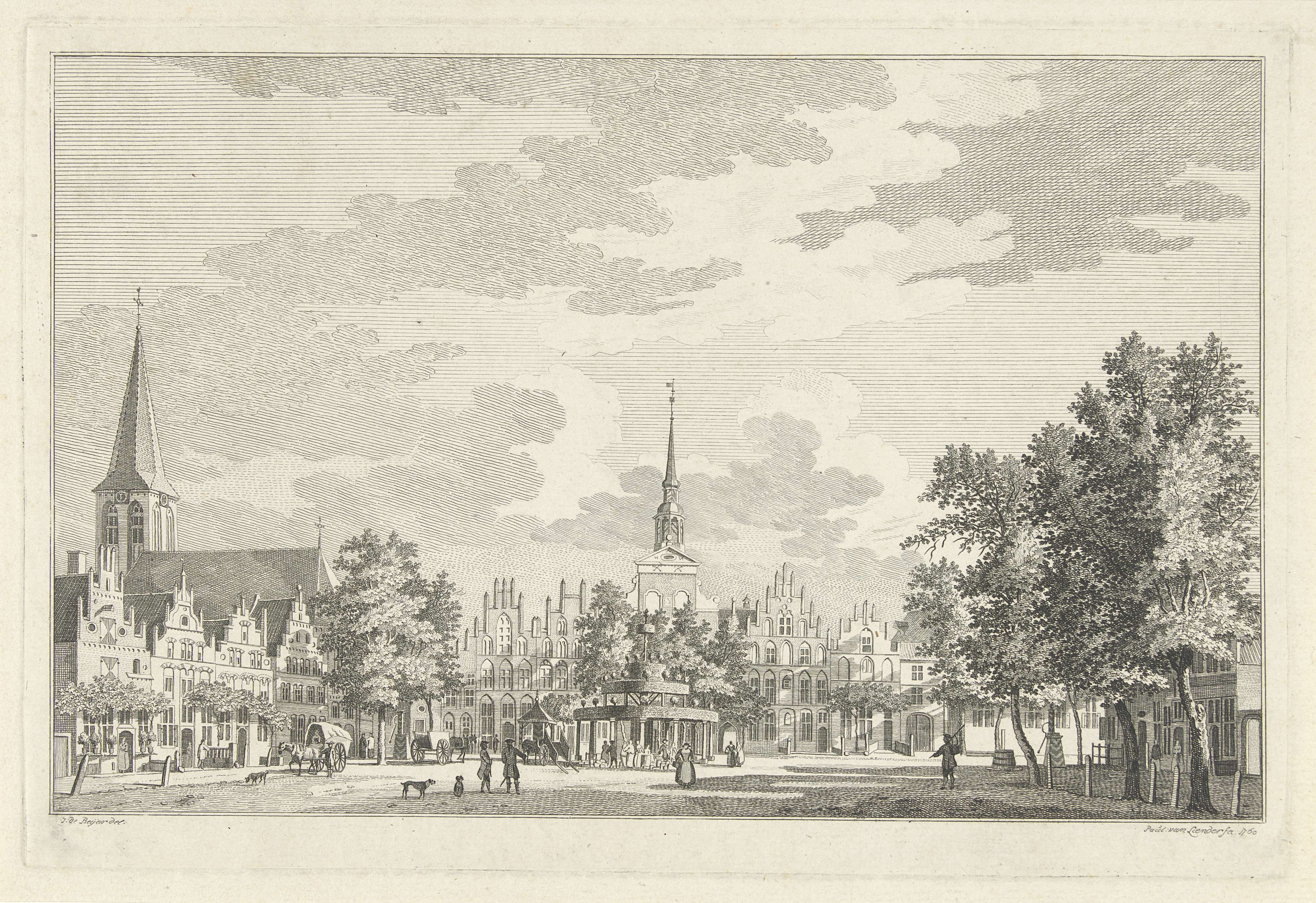 Stadsgezicht en het marktplein te Zevenaar, 1745