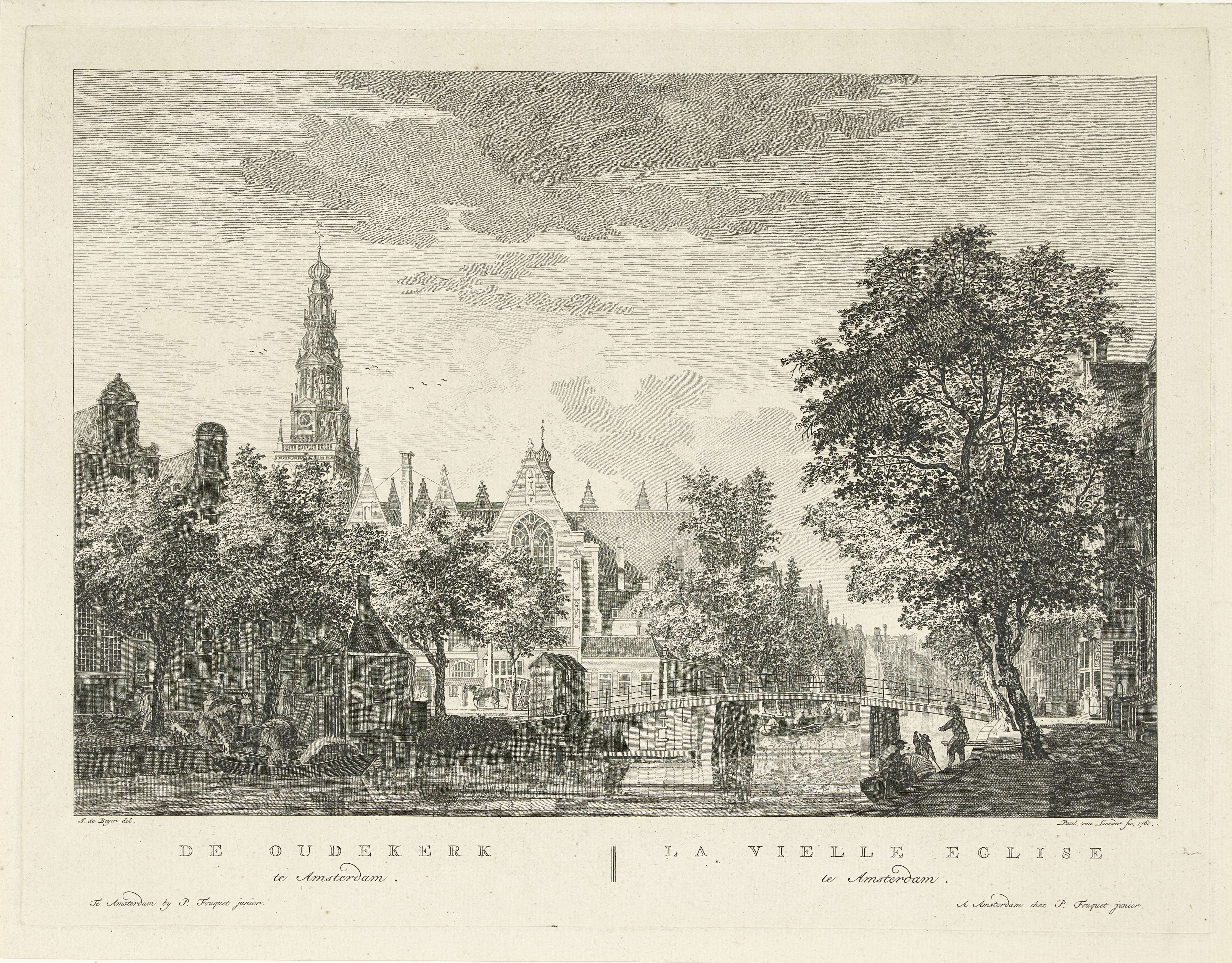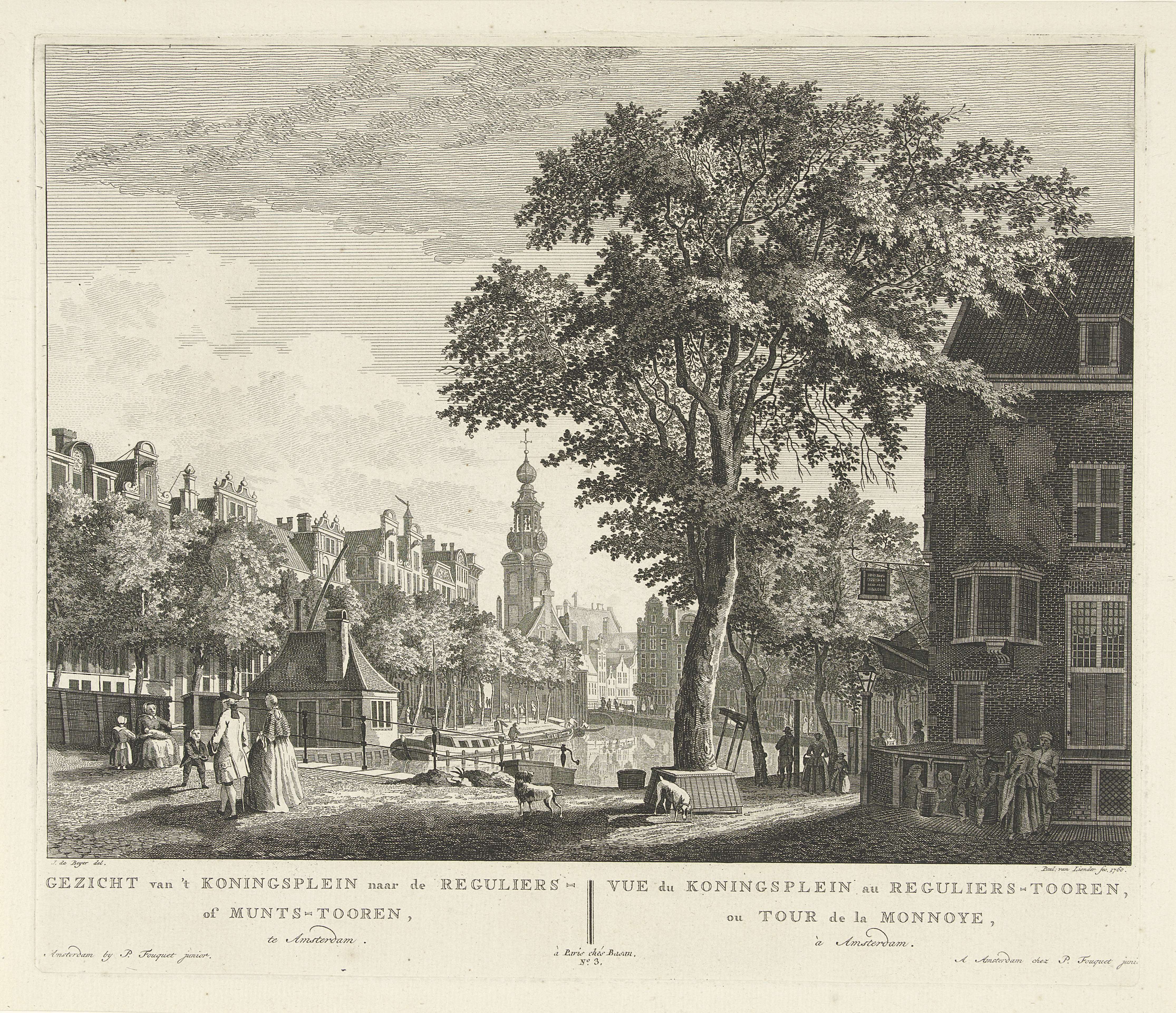 Gezicht op de Nieuwezijds Voorburgwal met de achterk...