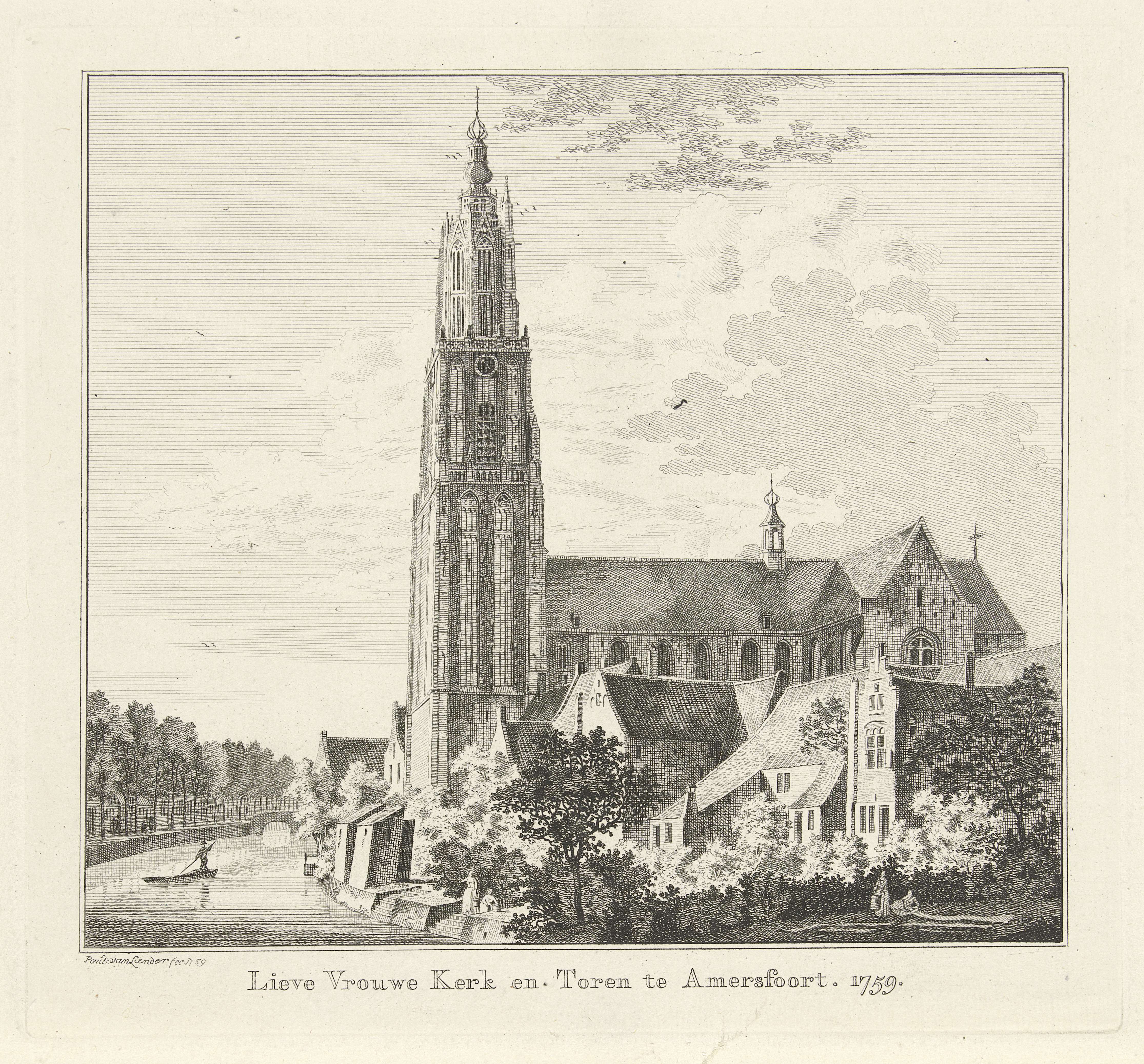 Gezicht op de Onze-Lieve-Vrouwetoren en kerk te Amer...