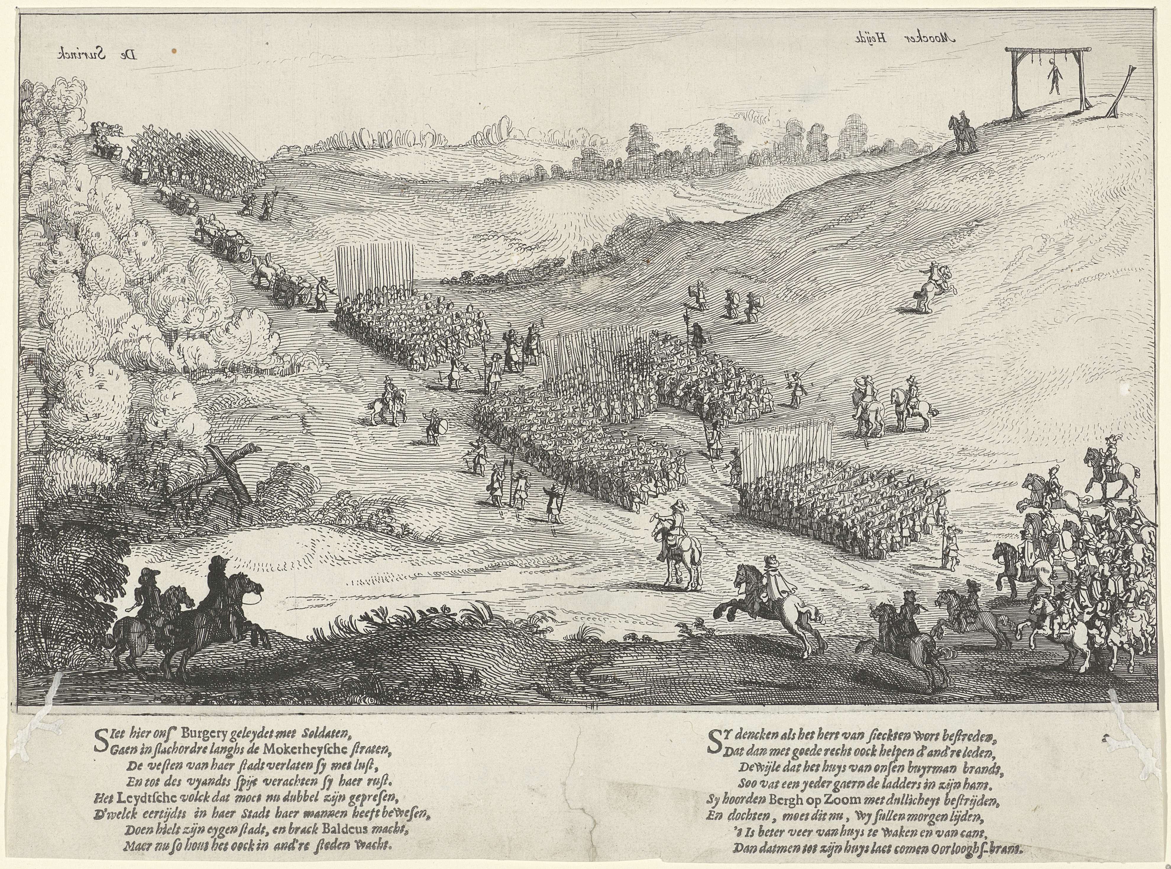 Schutterij van Leiden in slagorde op de Mookerheide,...
