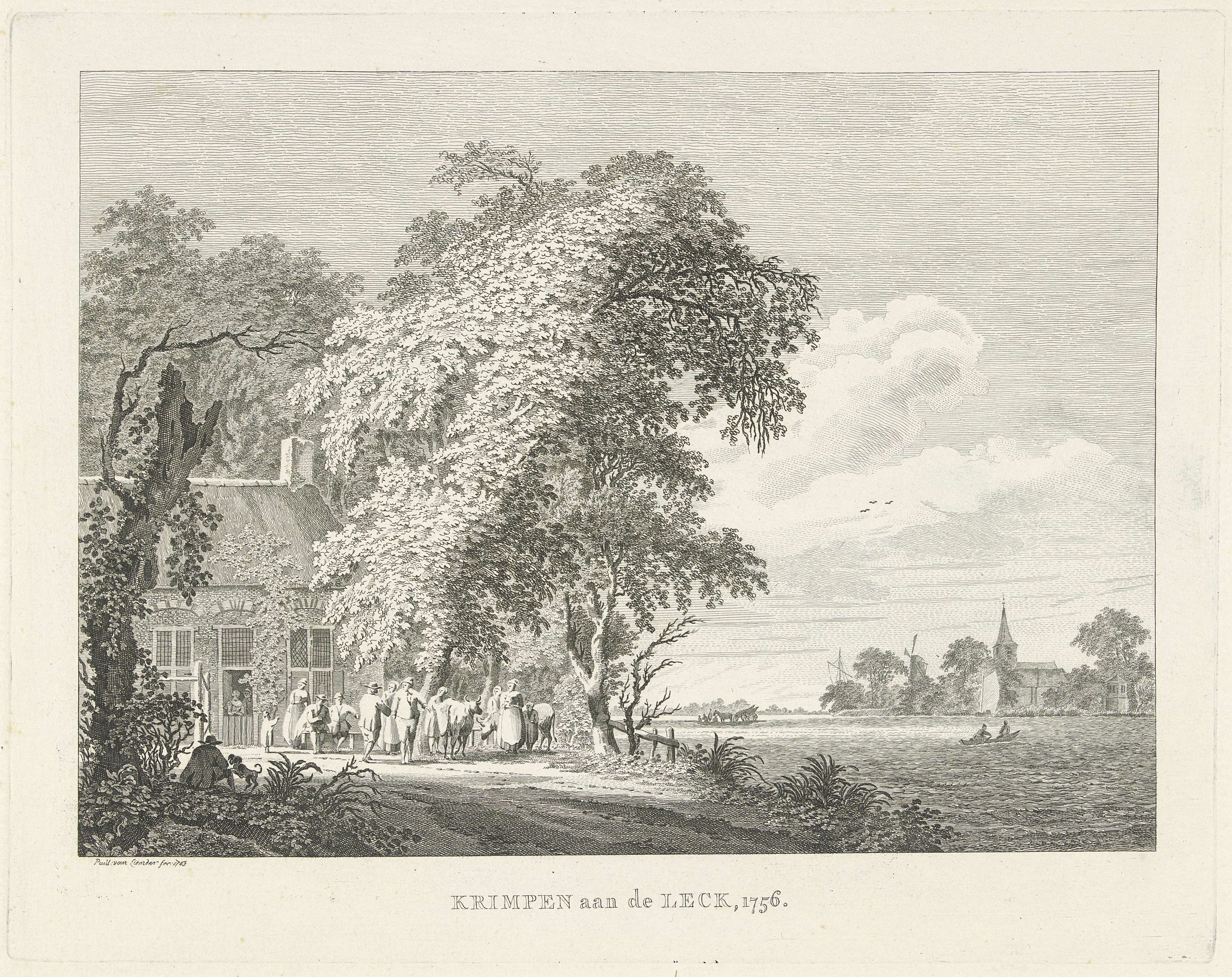 Gezicht op het veerhuis in Krimpen aan de Lek, 1756