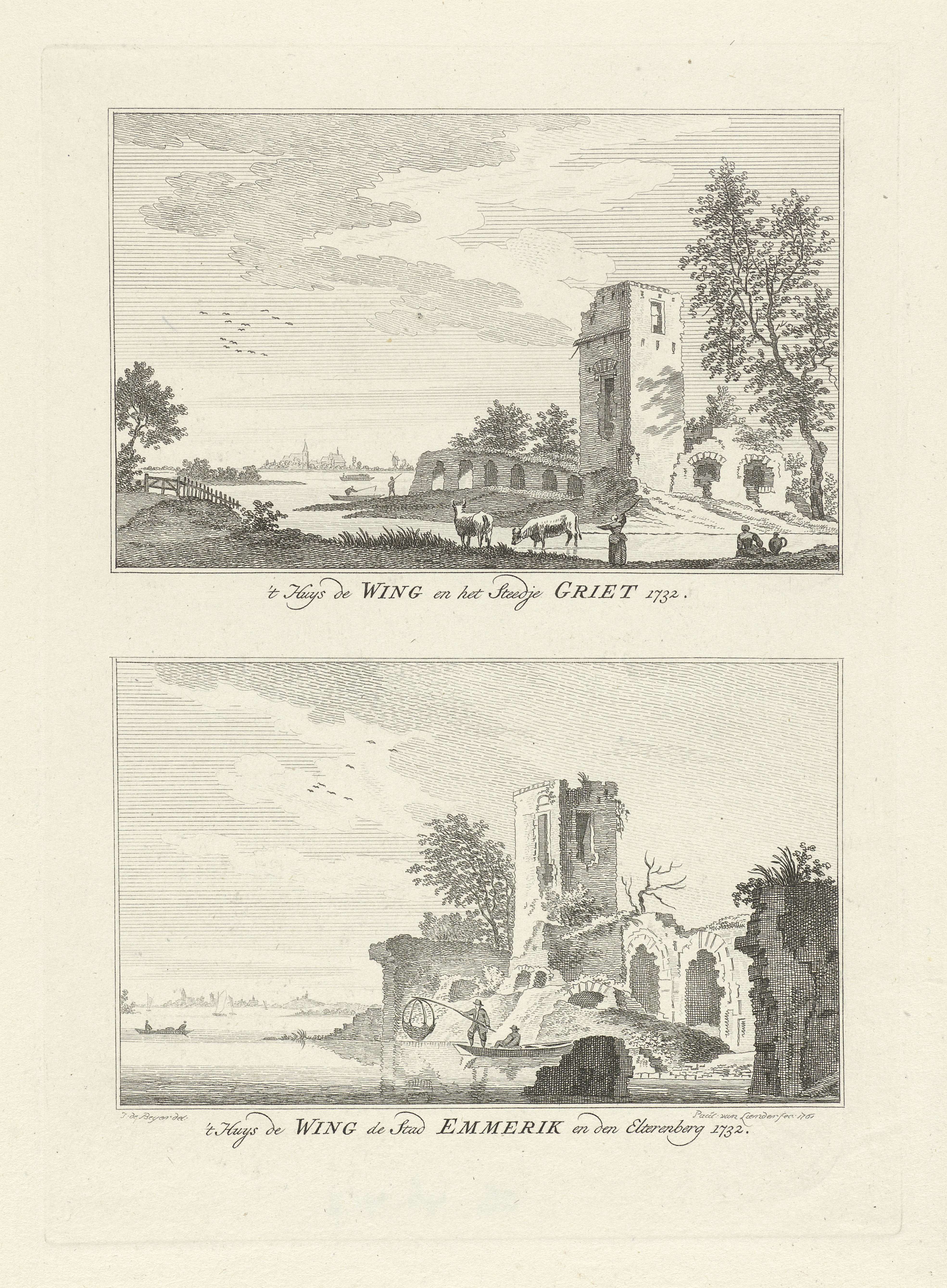 Gezichten op Huis de Wing en de steden Grieth en Emm...