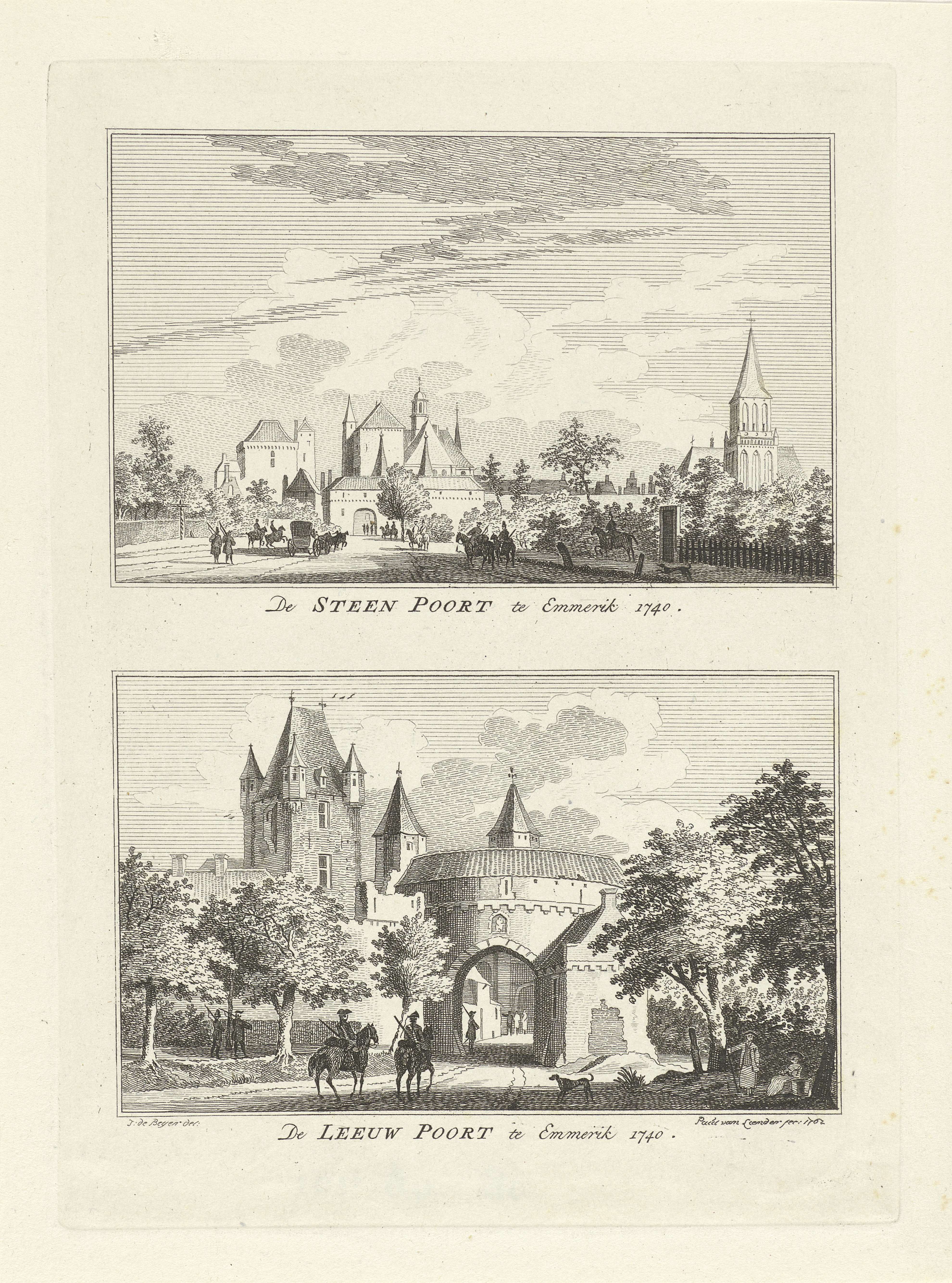 Steenpoort en Leeuwpoort te Emmerik, 1740