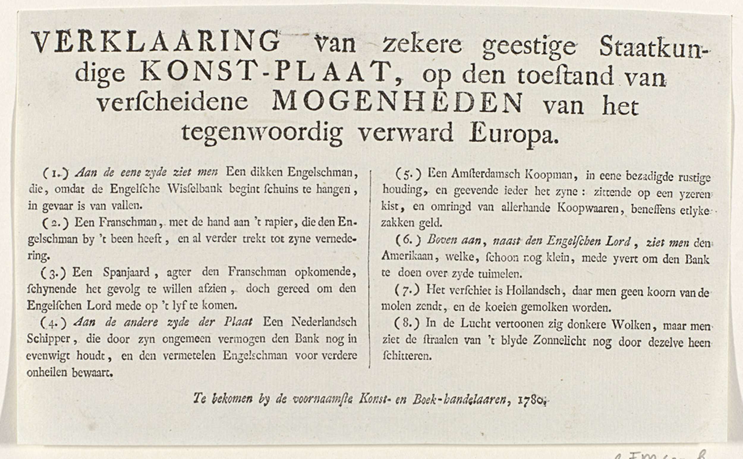 Bestraffing van de Engelse hoogmoed, 1780
