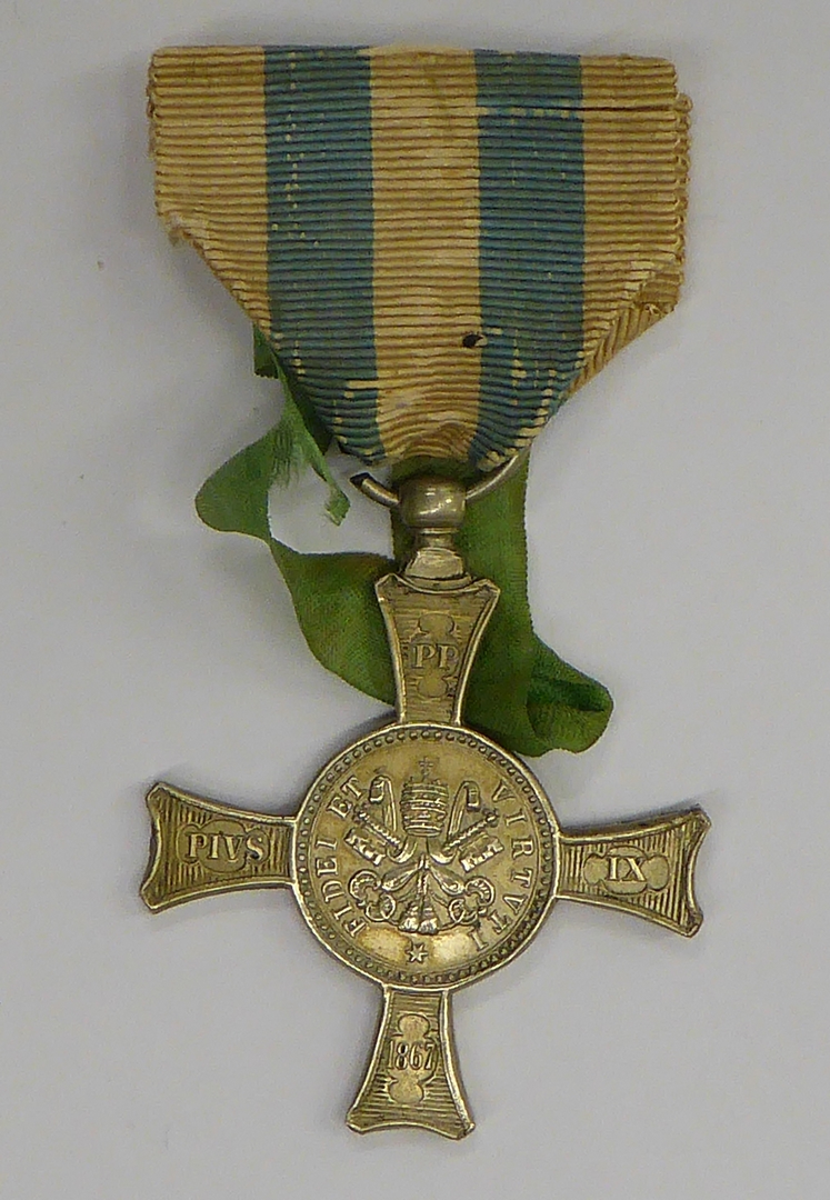 Mentanakruis met "Fidei et Virtuti ... Pius IX 1867"...