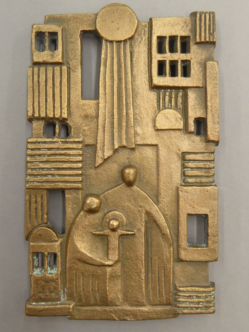 Heilige familie in gestileerde stad