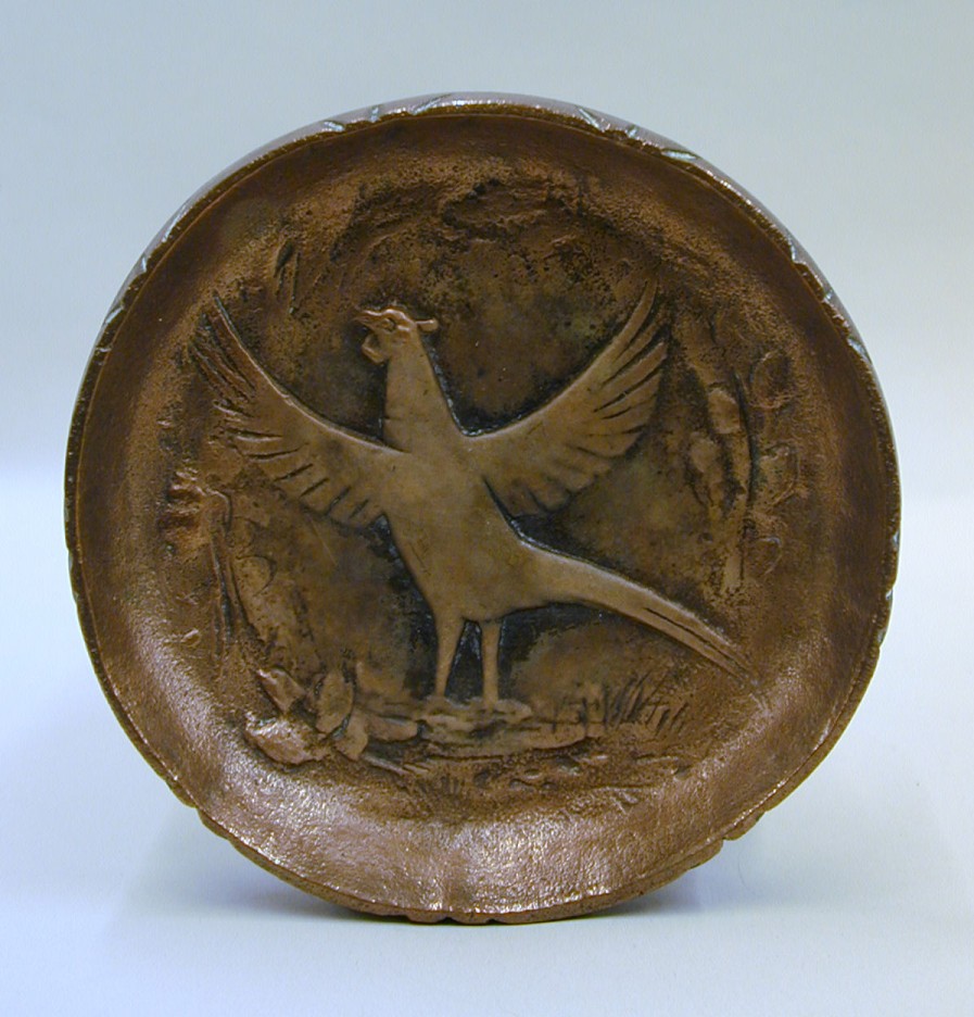Schaaltje met vogel met uitgeslagen vleugels (fazant...