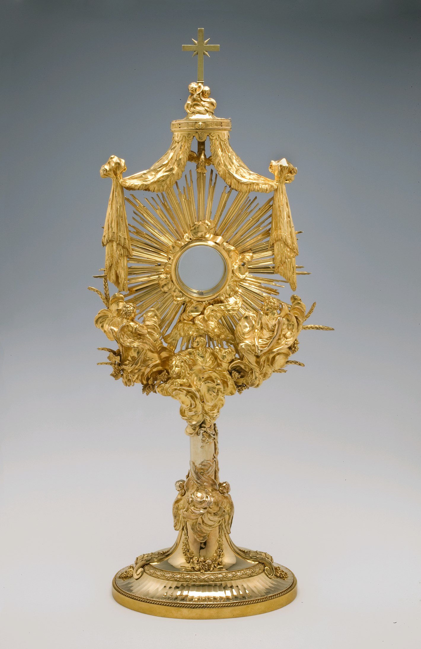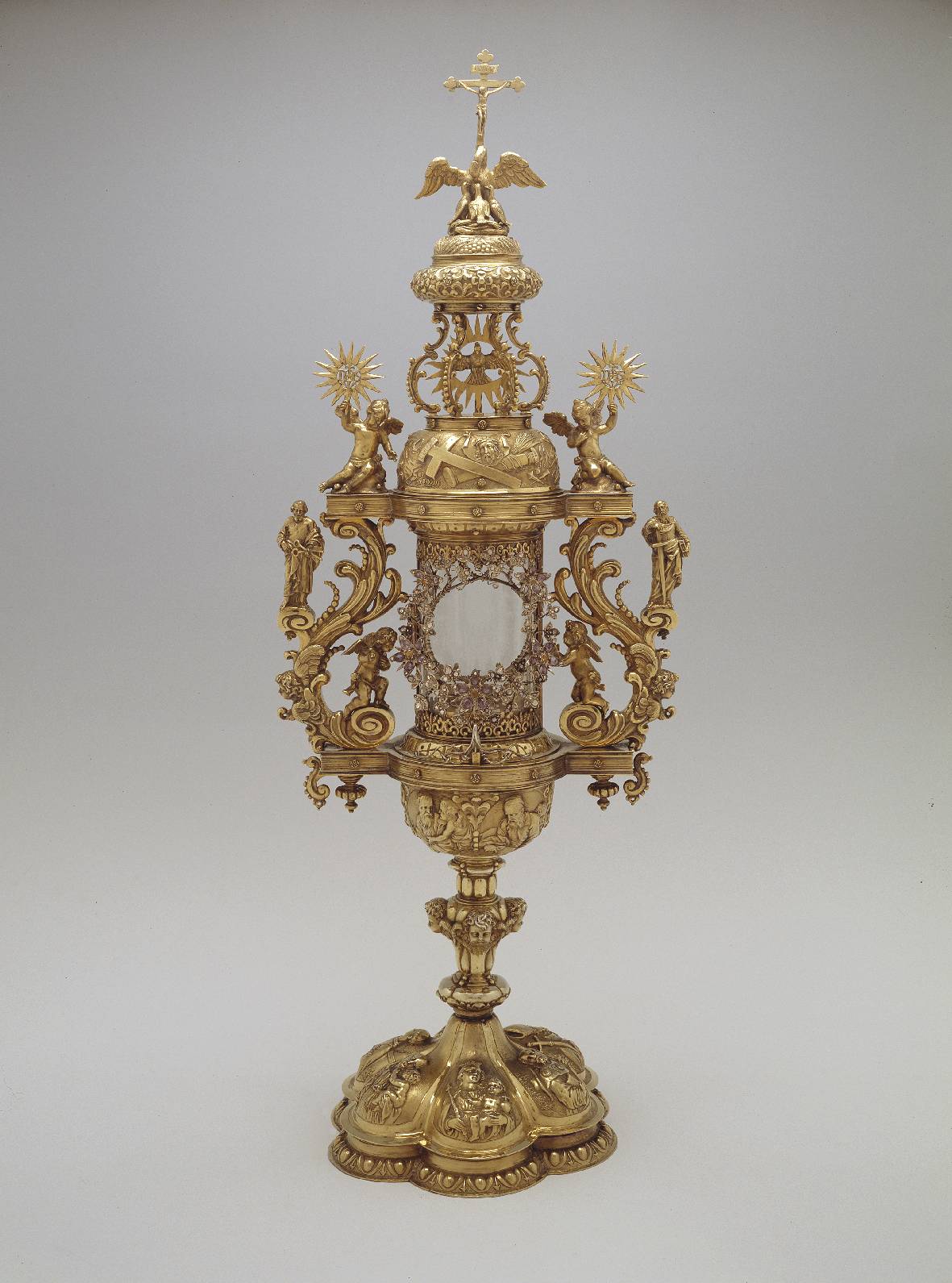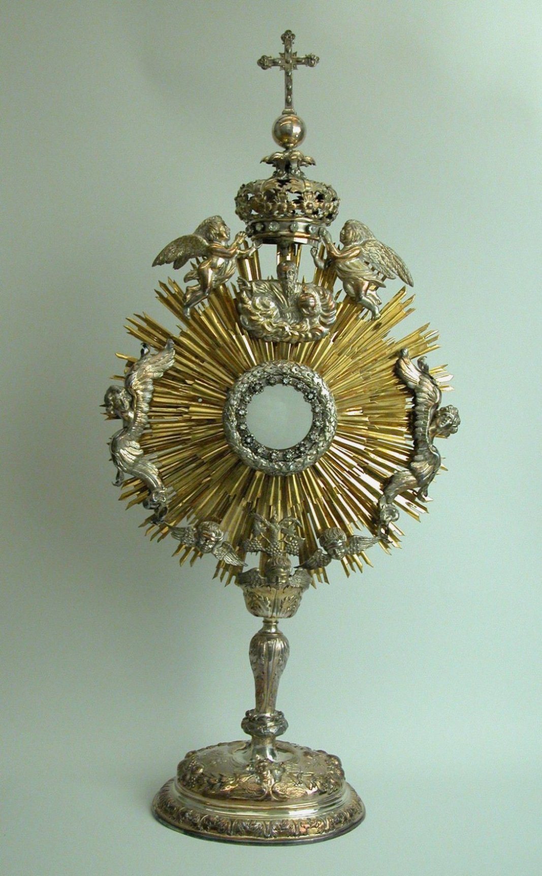 Stralenmonstrans op ovale voet met twee cherubijntje...
