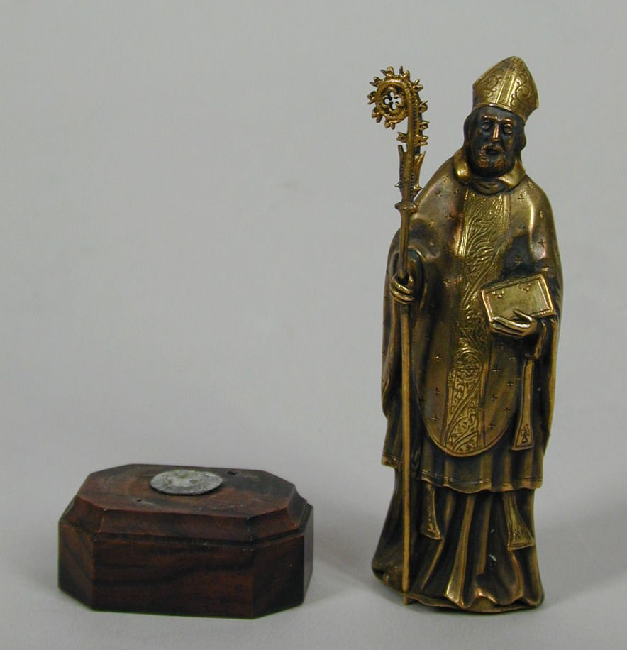 Reliekhouder op ronde voet met "Ex ossibus st.ae Lid...