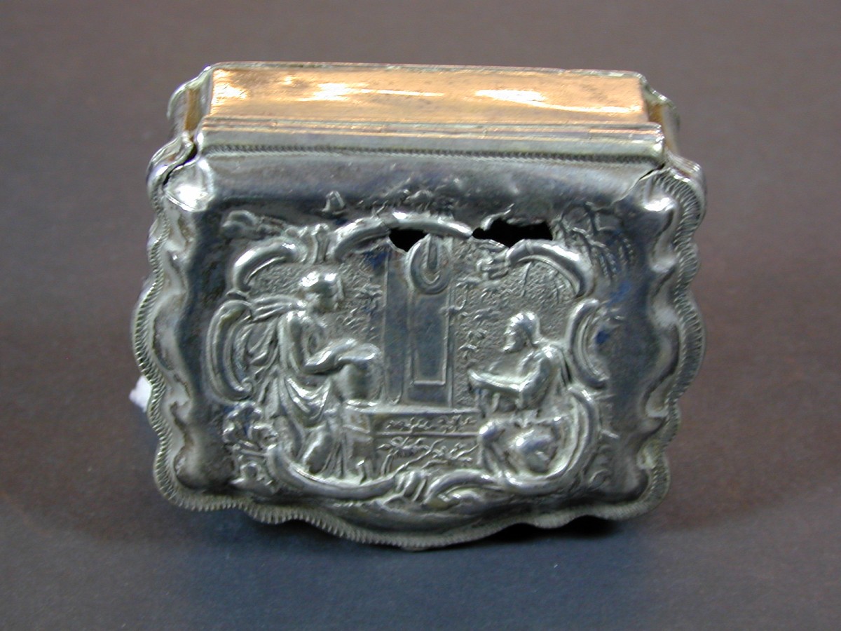 Kelk op zeslobbige voet waarop cherubijntjes en krui...