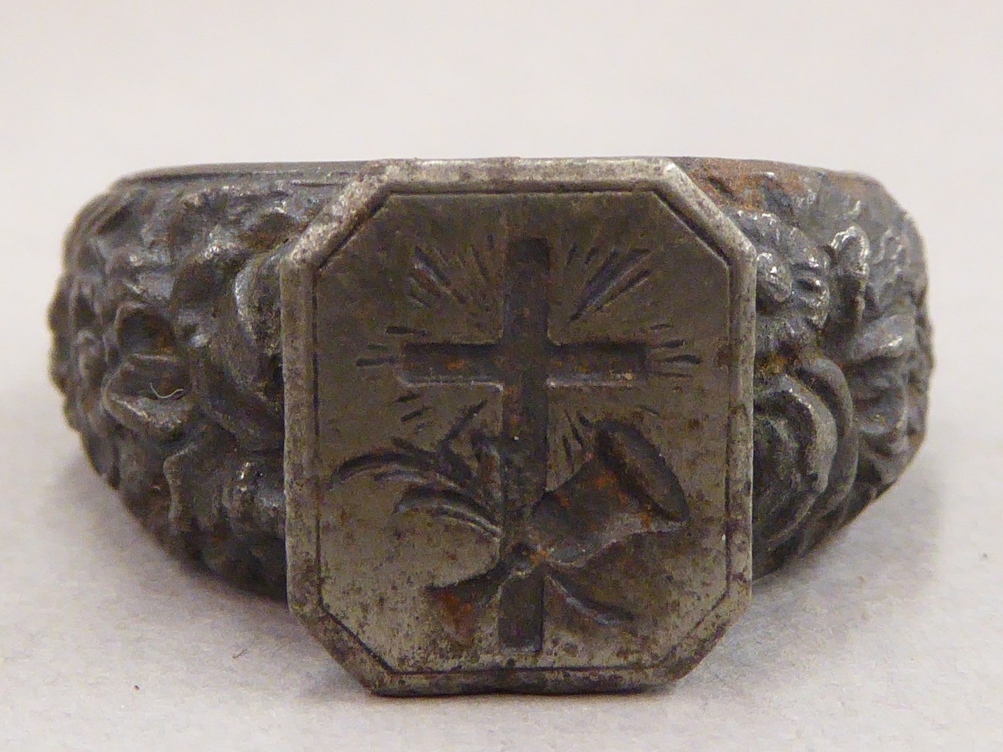 Zilveren pateen met kruis, onderzijde gehamerd